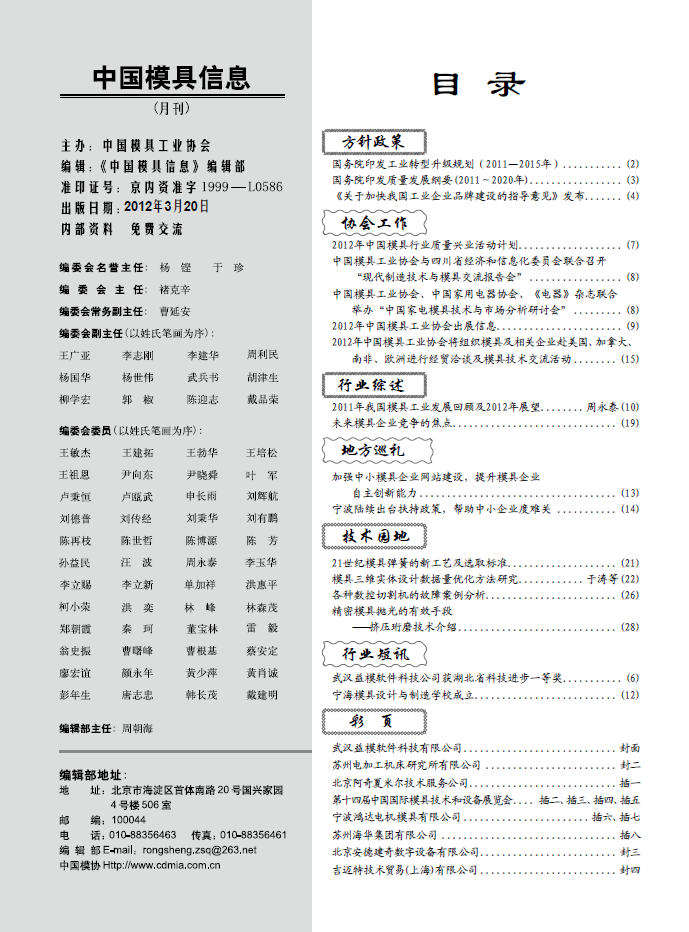 中國(guó)模具信息2012年第三期目錄