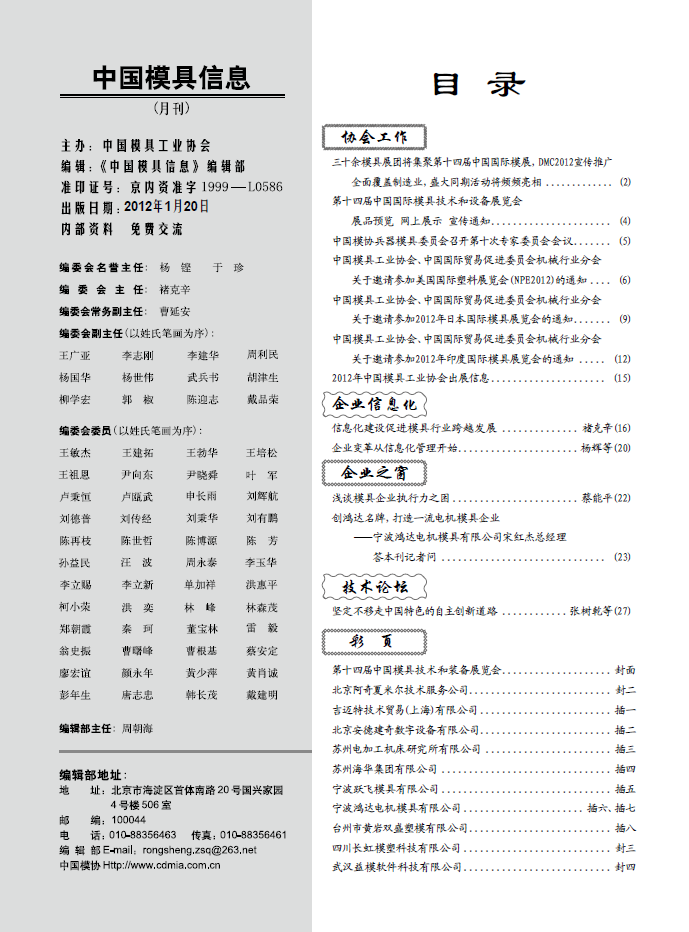模具行業“十四五”發展綱要? ?100元/本? ? ?聯系電話:010-88356463