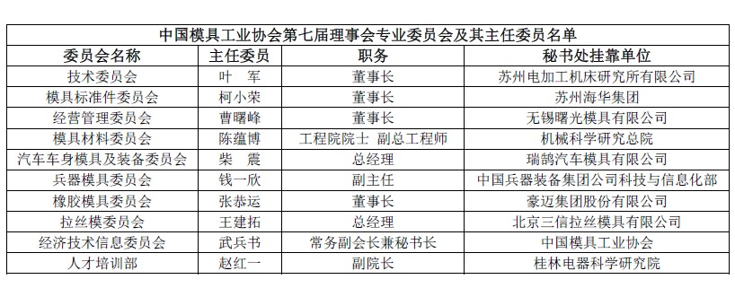 中國模具工業協會第七屆理事會專業委員會及其主任委員名單