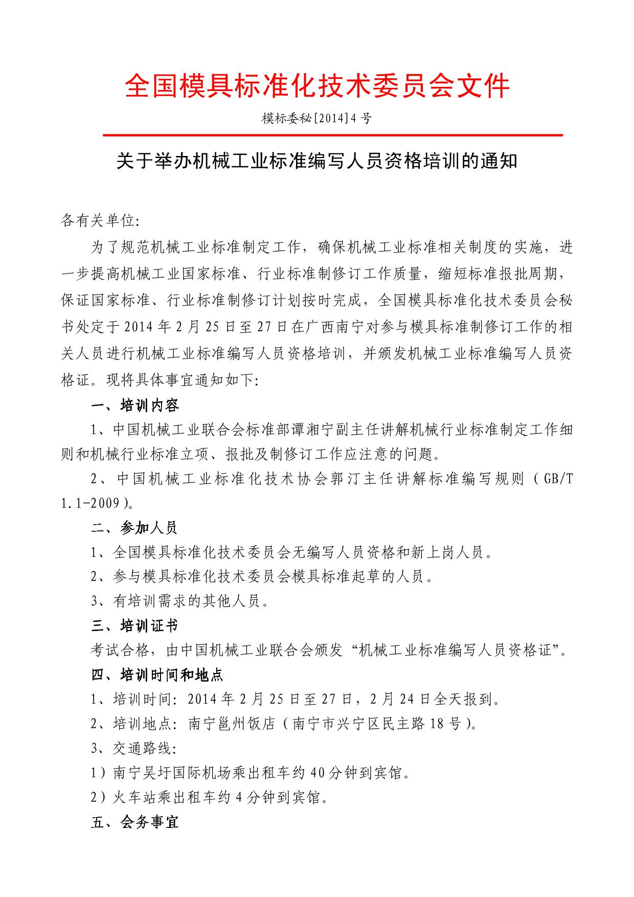 關于舉辦機械工業標準編寫人員資格培訓的通知