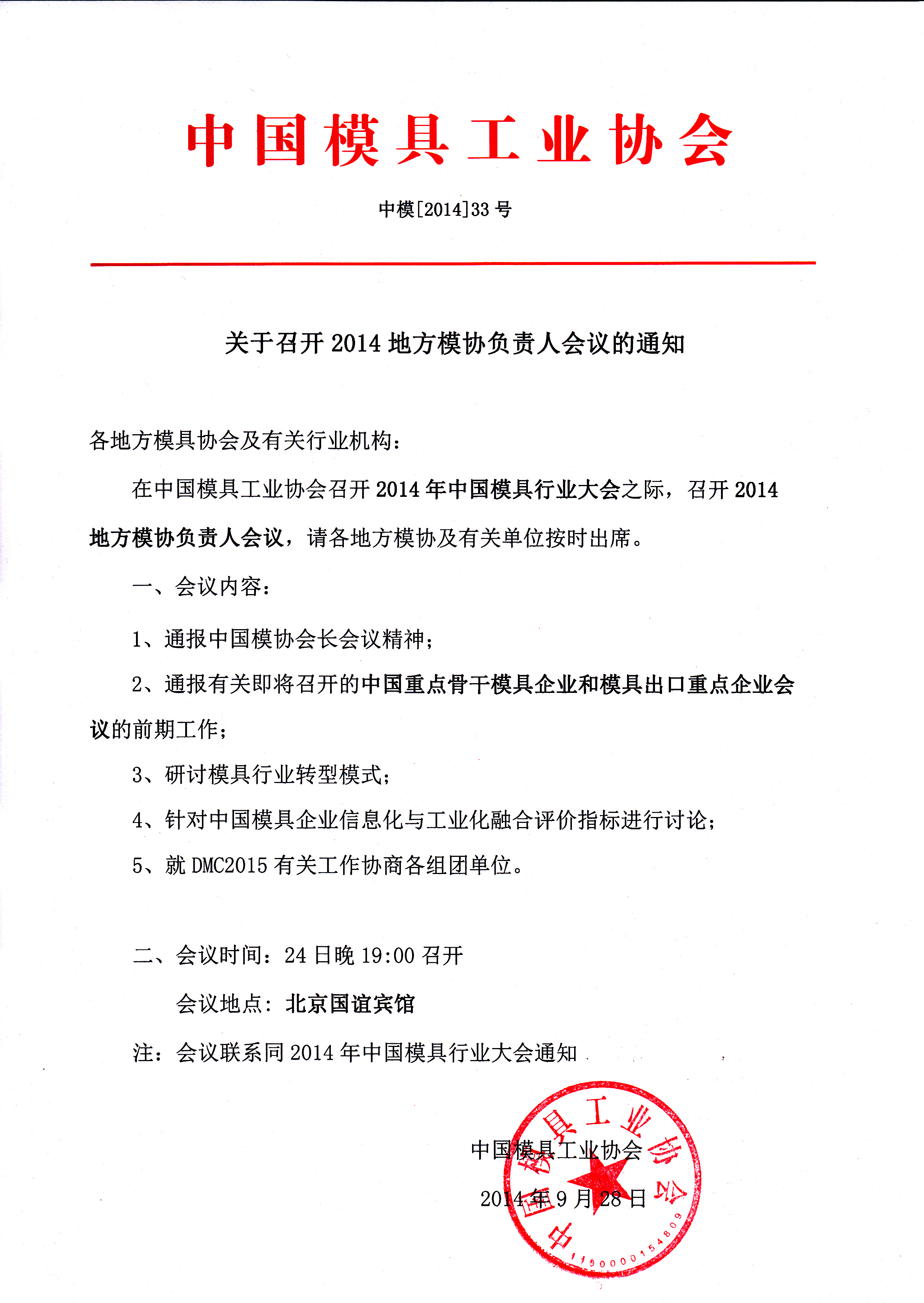 關(guān)于召開2014地方模協(xié)負(fù)責(zé)人會(huì)議的通知