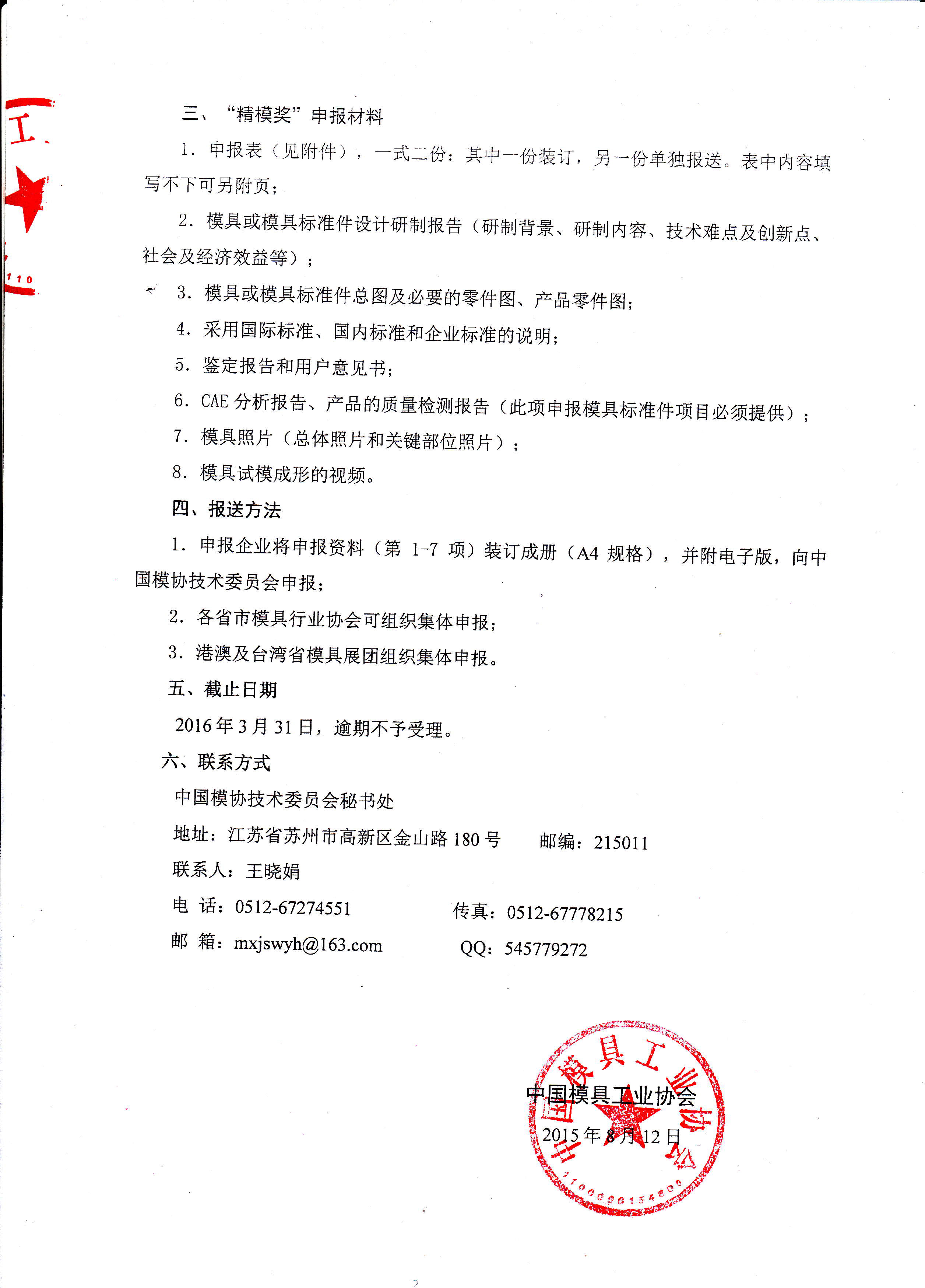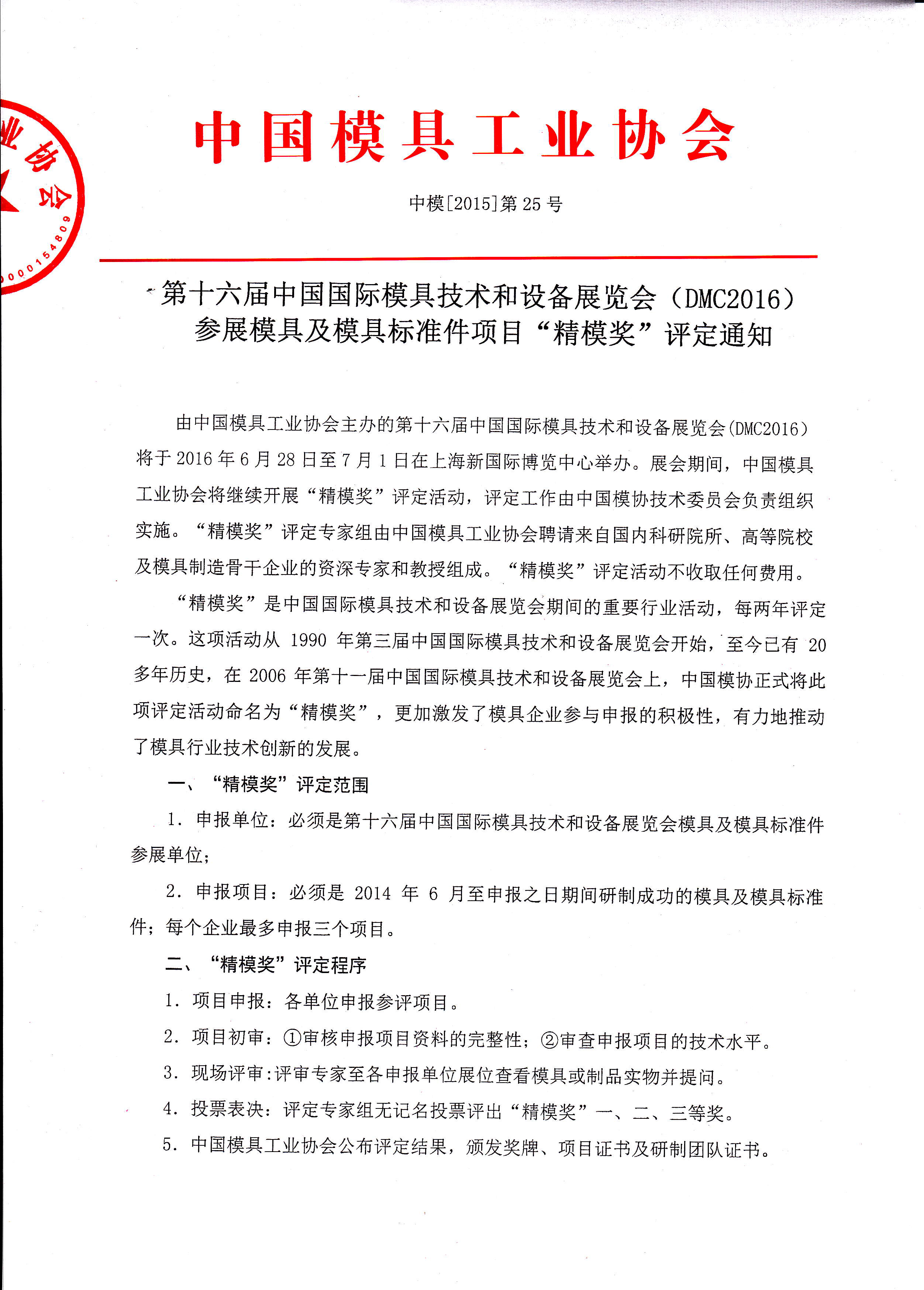 第十六屆中國(guó)國(guó)際模具技術(shù)和設(shè)備展覽會(huì)(DMC2016)參展模具及模具標(biāo)準(zhǔn)件項(xiàng)目“精模獎(jiǎng)”評(píng)定通知