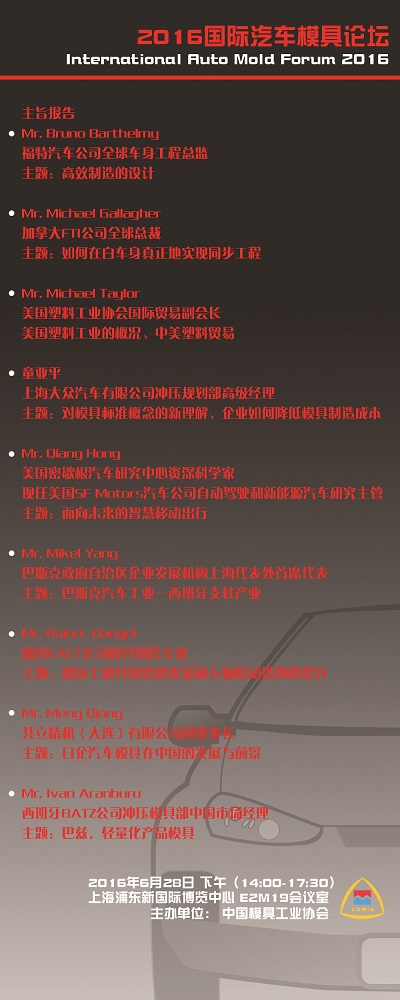 2016國際汽車模具論壇議程