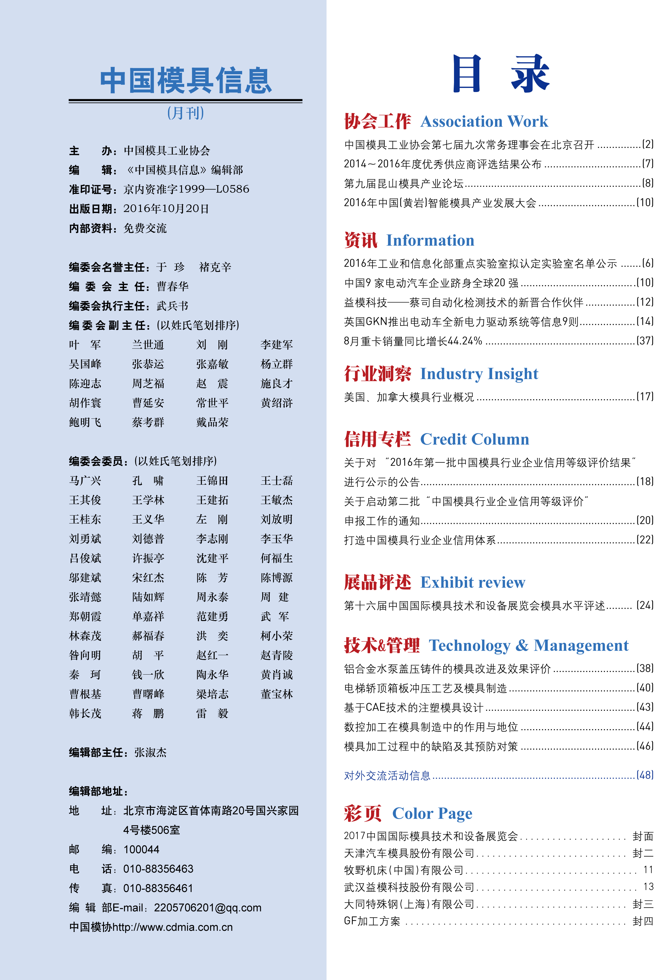 中國模具信息2016年第十期目錄