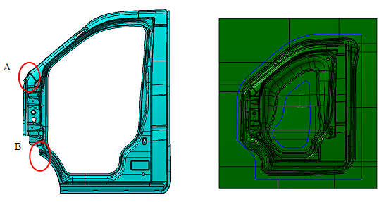 側圍外板是汽車外覆蓋件中最為重要的零件,其形狀復雜、成形難度大、模具結構復雜、裝配關系最多,也就決定了它的表面質量及尺寸精度要求極高,因此側圍外板沖壓工藝制定是整個汽車車身開發的技術難點。 本文主要從側圍的沖壓工藝設計方面入手,結合數值模擬仿真技術,對側圍的拉延成形過程進行了模擬分析。同時通過對后工序翻邊整形開裂起皺問題的整改,積累了側圍外板翻邊整形問題解決方法的寶貴經驗,為解決此類問題提供了很好的參考作用。