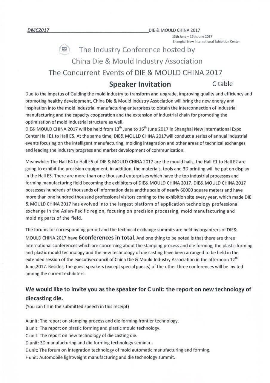 The Concurrent Events of Die & Mould china 2017