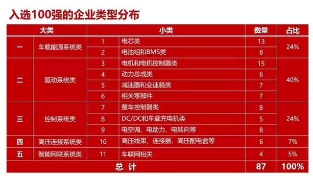 中國(guó)電動(dòng)汽車(chē)零部件100強(qiáng)入選名單
