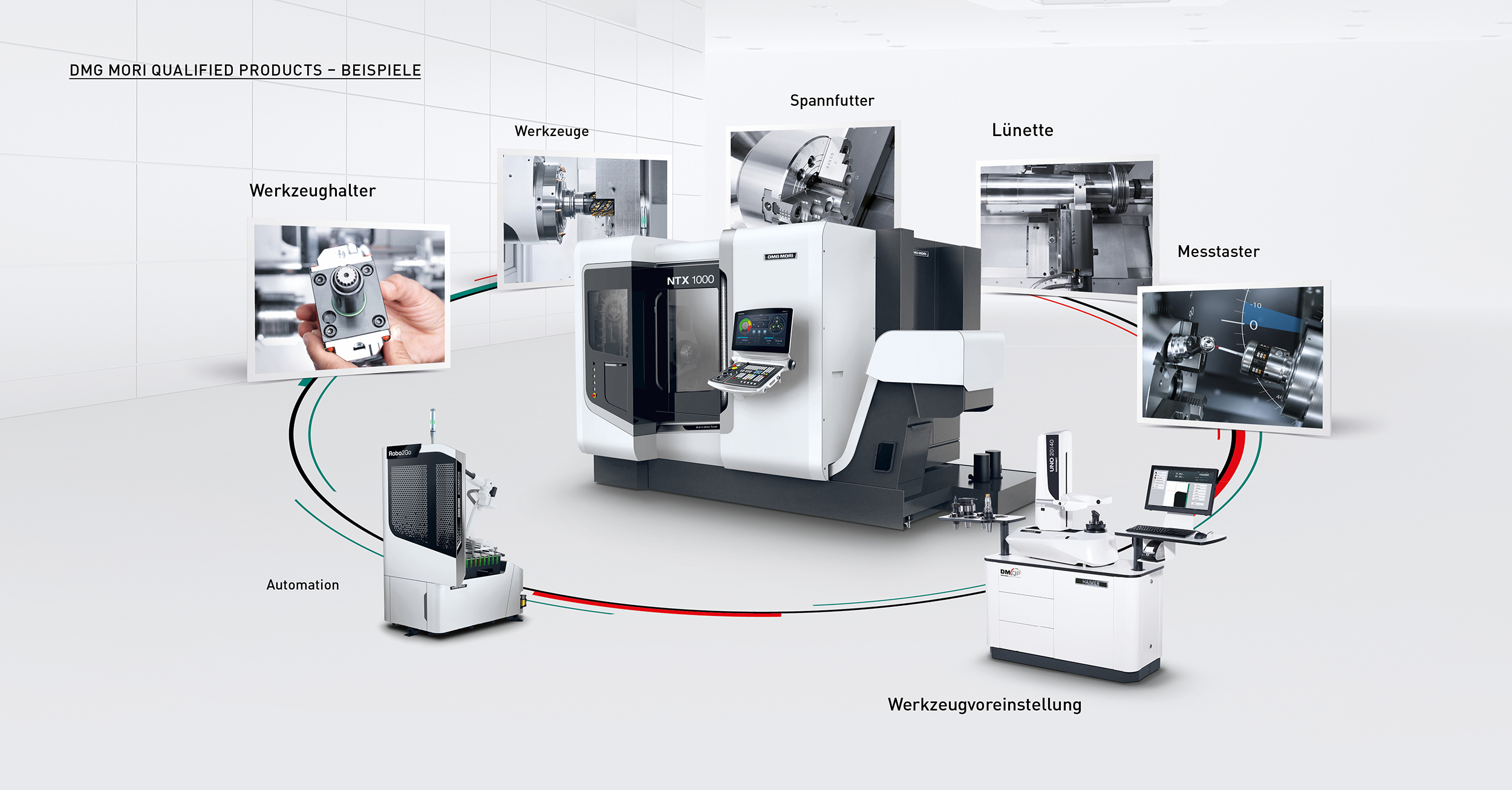 DMG MORI的生產解決方案包括外部供應商提供的測量設備、刀柄和夾持系統等輔助設備和配件。這些設備和產品為高質量數控機床而設計制造。DMG MORI認證產品(DMQP)是高質量的代表。認證條件包括產品的內部認證、價格穩定性和相應的質保條件。