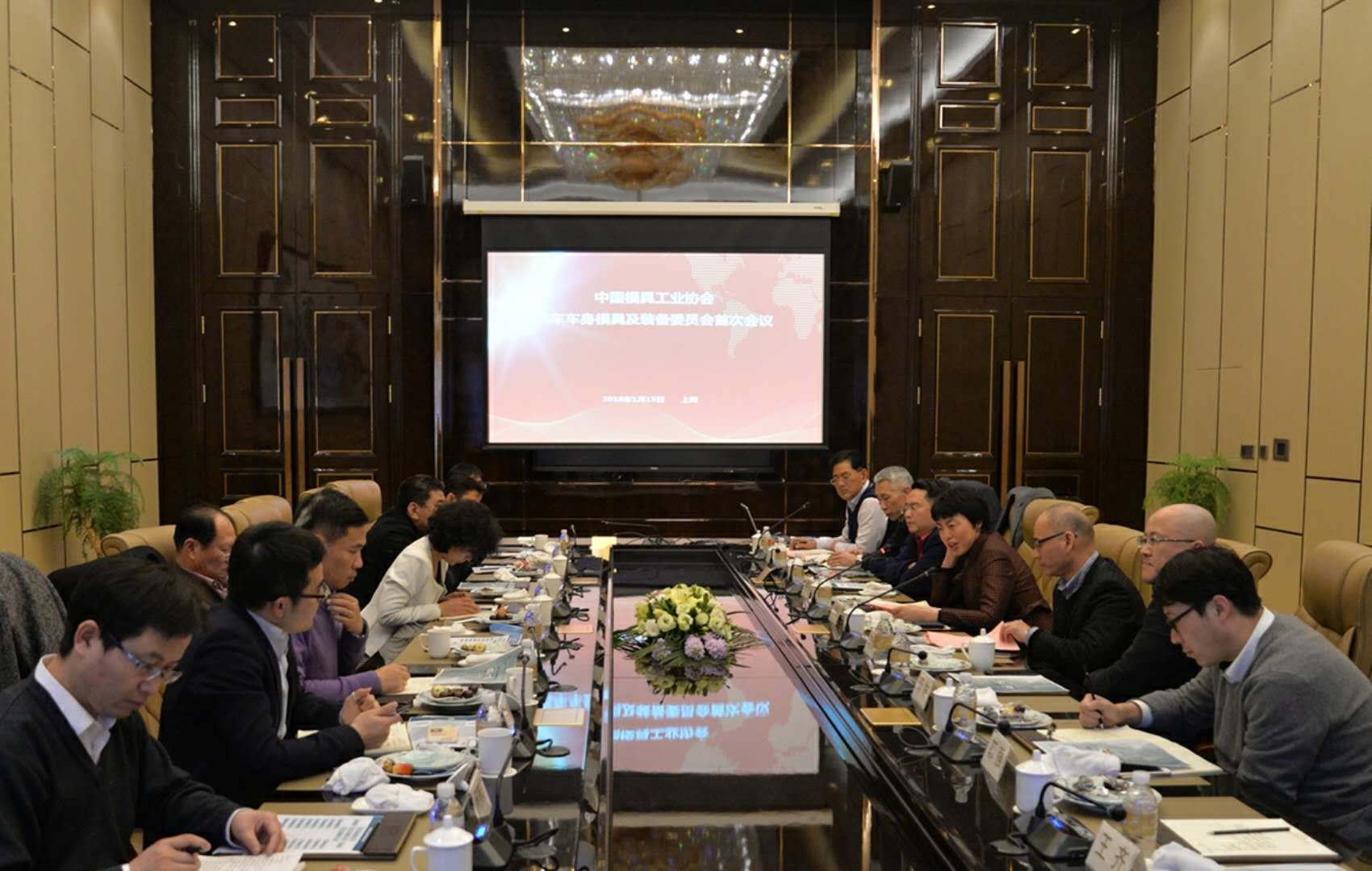 2018 1 15 日,中國模具工業協會汽車車身模具及裝備委員會(簡稱中模車裝委)首次會議在上海順利舉行。參加此次會議的有中國模具工業協會秘書長秦珂女士、上海模具工業協會秘書長劉德普先生、中模車裝委主任余秀慧女士、常務副主任蔣冶晴先生,以及來自一汽模具、瑞鵠模具、東風模具、十堰先鋒模具、申模數字化以及同濟大學的副主任及副主任代表。中模車裝委秘書長須俊華先生主持了會議。