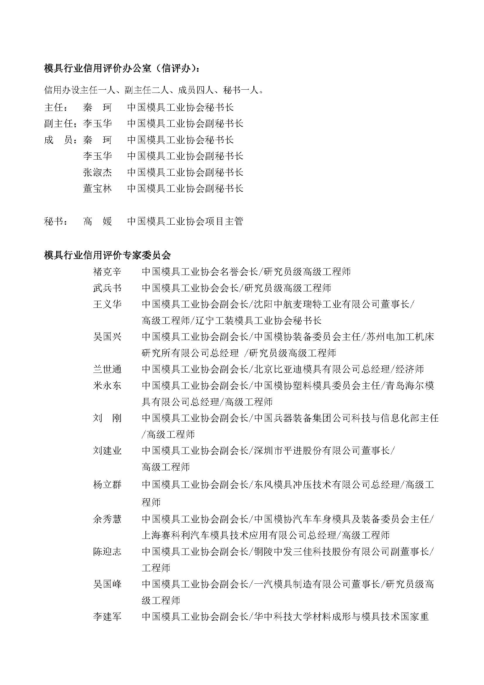 模具行業信用評價工作組織機構名單