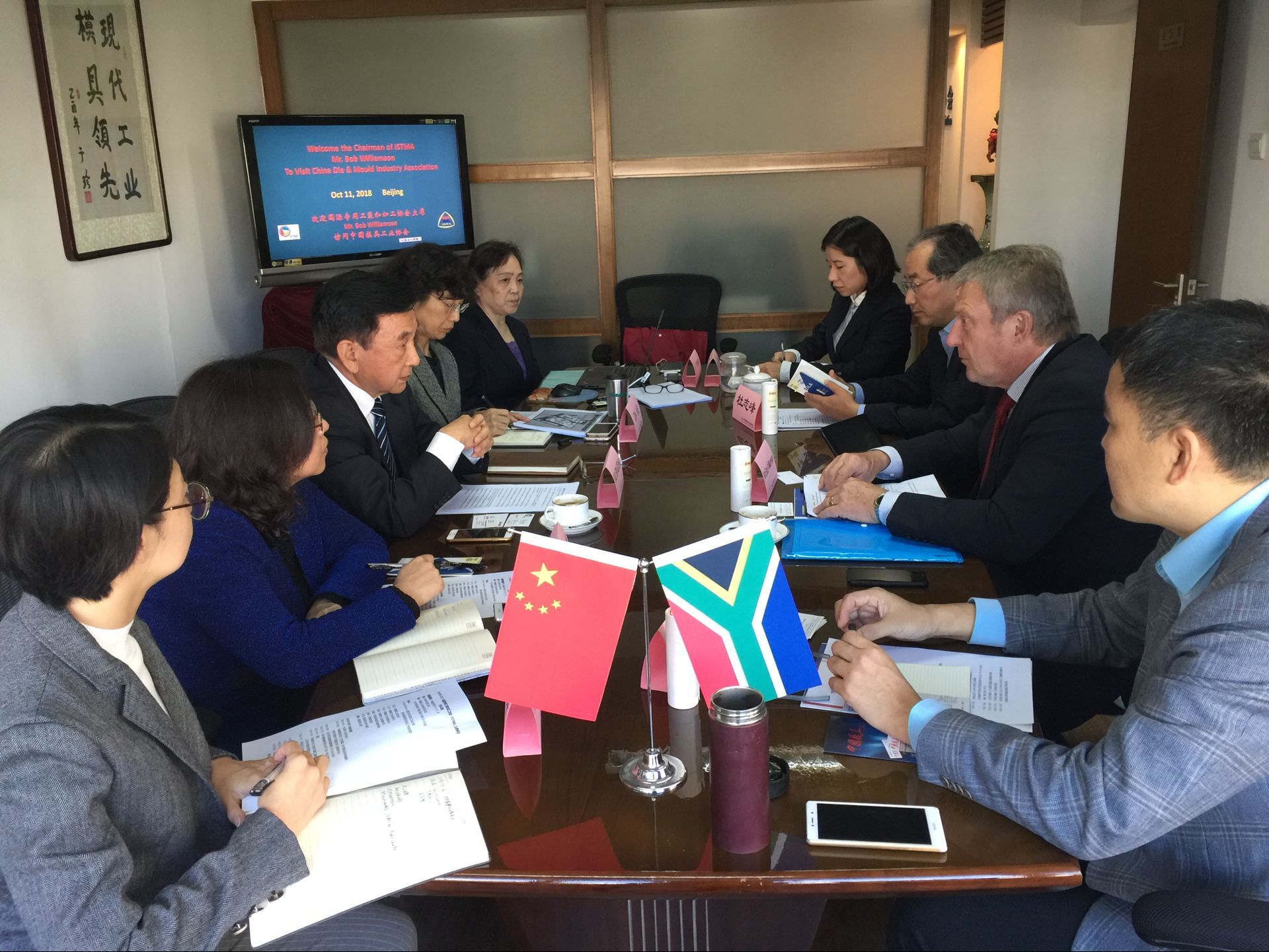 在金磚國家合作五周年,北汽整車南非基地一期建設即將完成之際。2018年10月11日,國際專用工裝和加工協會(ISTMA)主席Mr.Bob Williamson到訪中國模具工業協會秘書處。中國模具工業協會會長武兵書,秘書長秦珂,副秘書長李玉華、張淑杰,北汽國際采購部負責模具專家左喜順,北汽模具總經理杜志峰,中國模具工業協會國際部項目主管高媛、田慧卿參加座談。