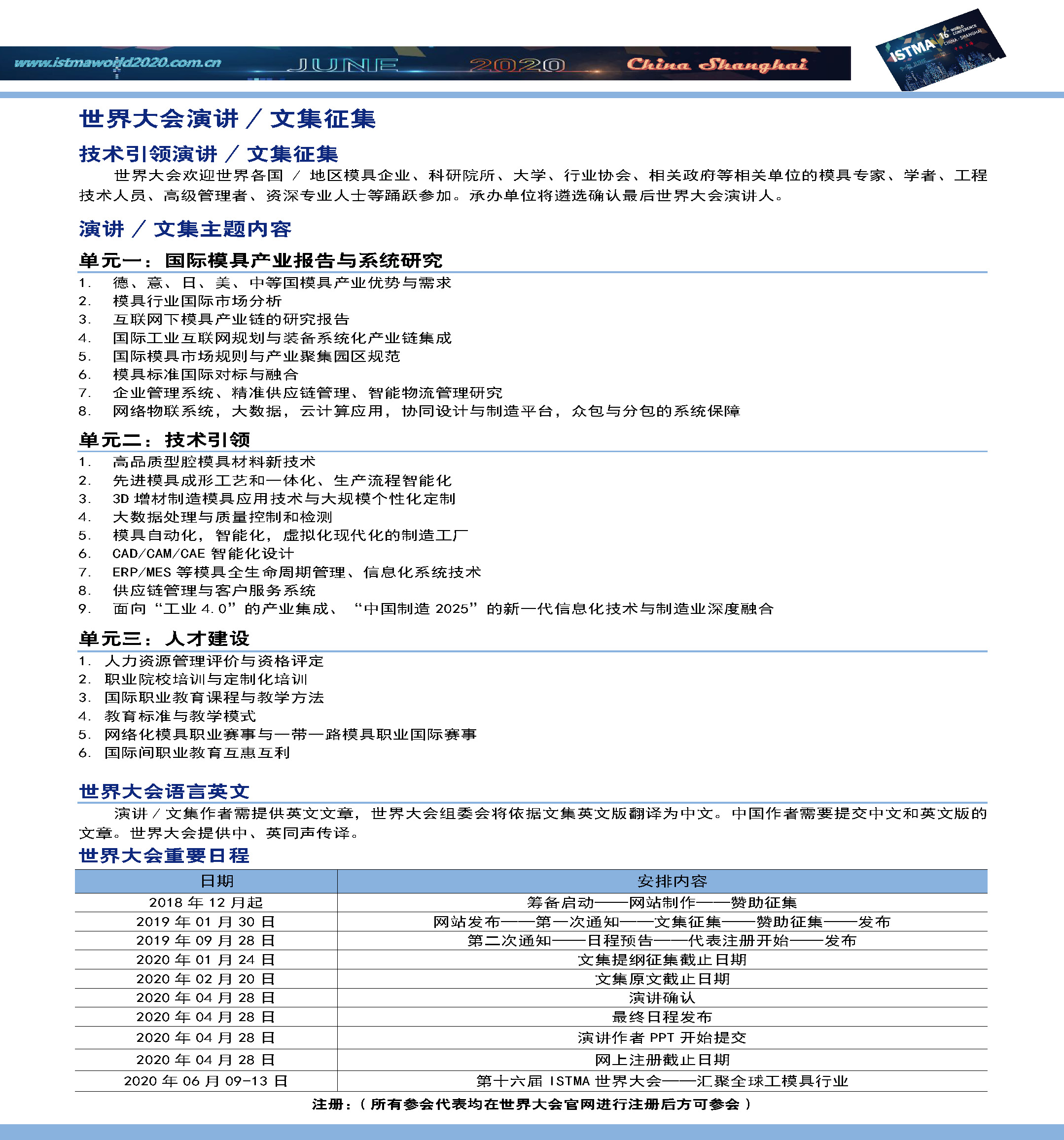 第十六屆ISTMA世界大會——匯聚全球工模具行業(yè) 文集、注冊邀請