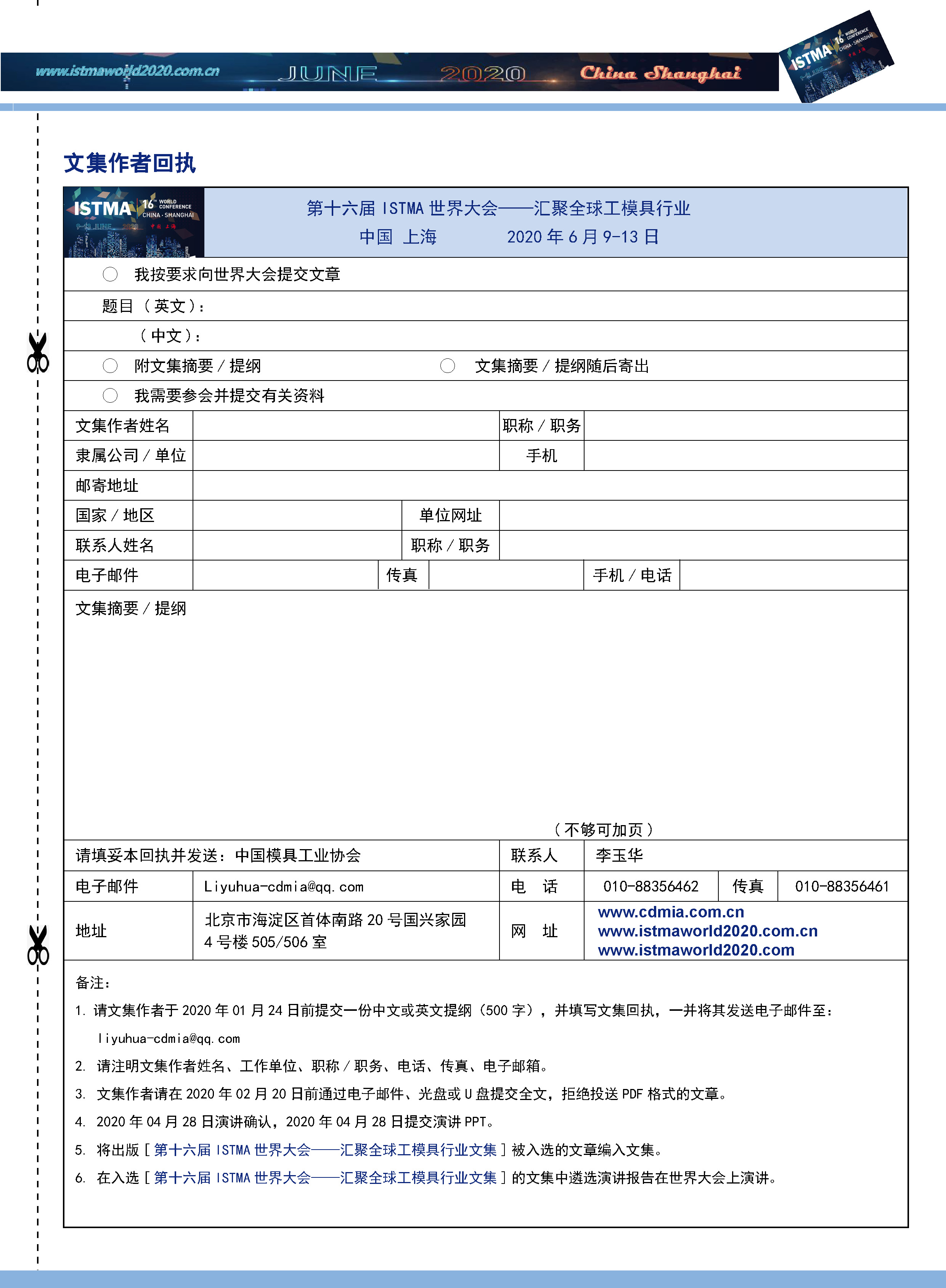 ISTMA世界大會文集征集-附件回執(zhí)表.docx