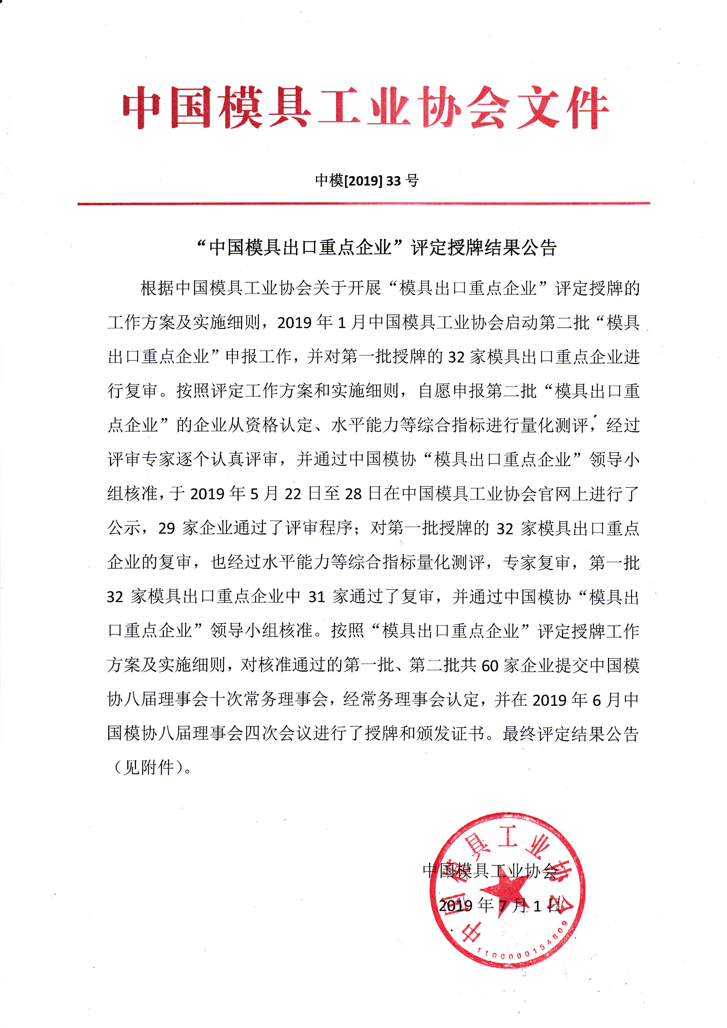 “中國模具出口重點企業(yè)”評定授牌結(jié)果公告 |