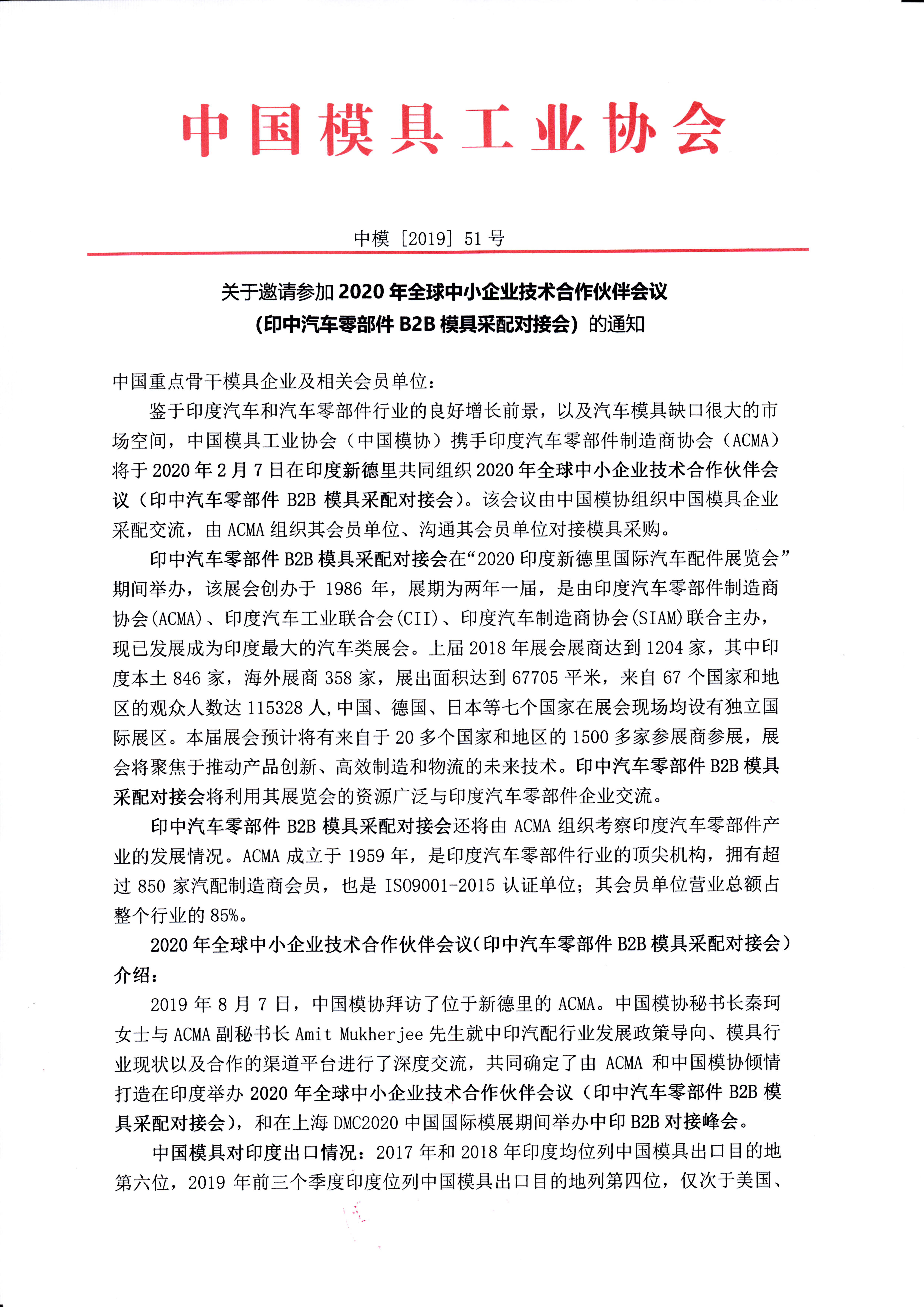 關(guān)于邀請參加2020年全球中小企業(yè)技術(shù)合作伙伴會(huì)議的通知