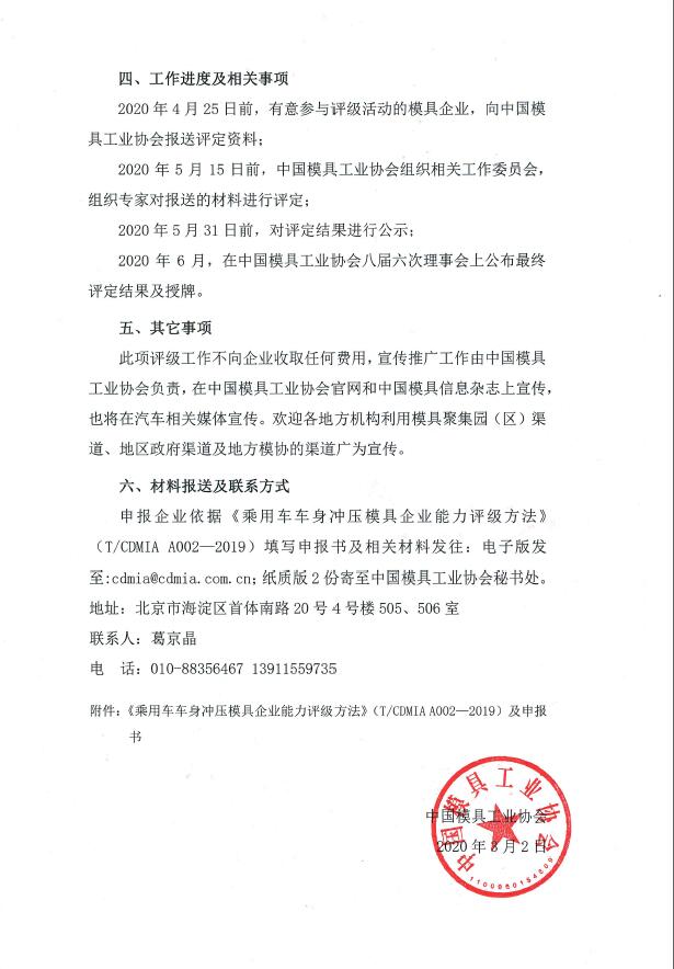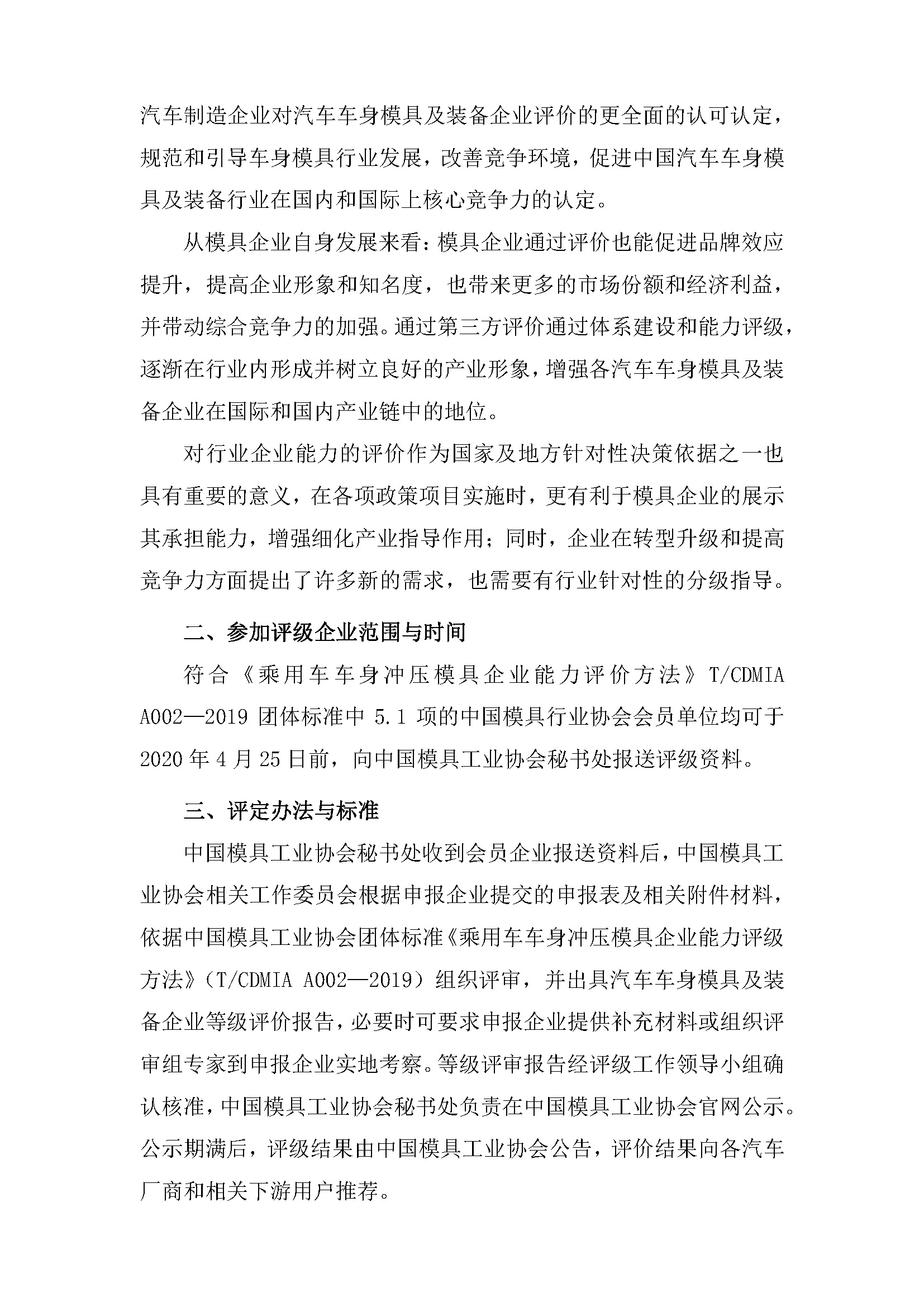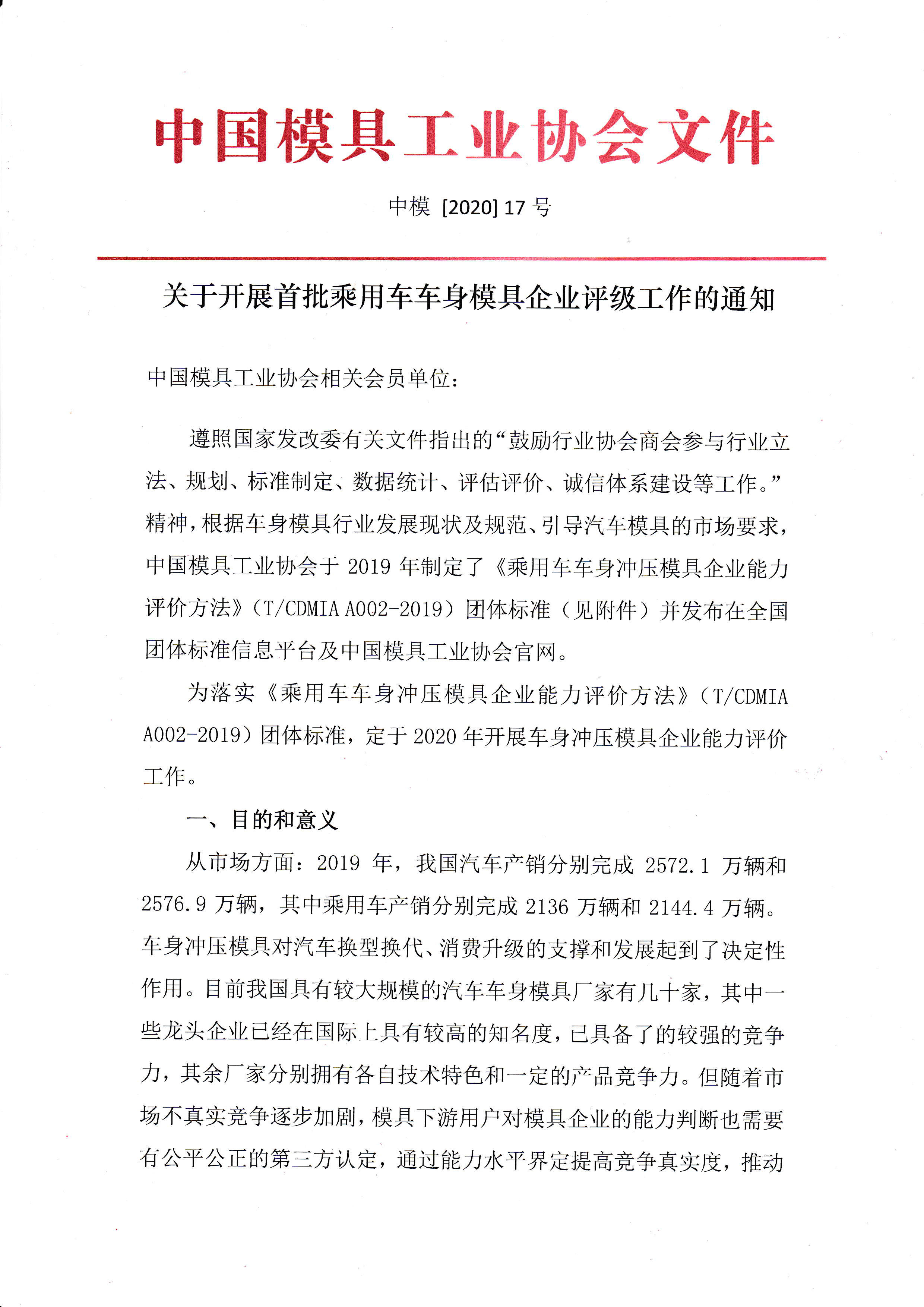 關(guān)于開展首批乘用車車身模具企業(yè)評(píng)級(jí)工作的通知