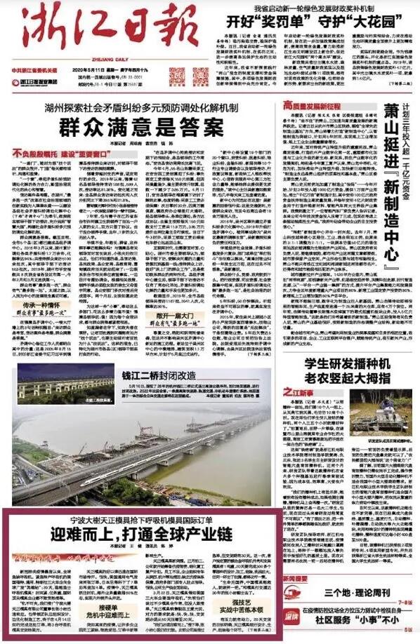 在磨難中不斷分析、思考、總結,危機降臨,才能迅速危中取機。全球3萬家模具企業,寧波有4000多家,疫情加速中小模具企業的倒閉。天正模具卻趁著疫情,忙著收購東南亞、南美的模具企業,在當地籌建模具銷售服務基地。2008年經濟危機,天正模具收購一家美國企業,建成北美基地。2019年5月,建成歐洲基地。“爭取海外市場,必須在當地有自己的服務基地。”張小巖的全球供應版圖在疫情中加速推進。