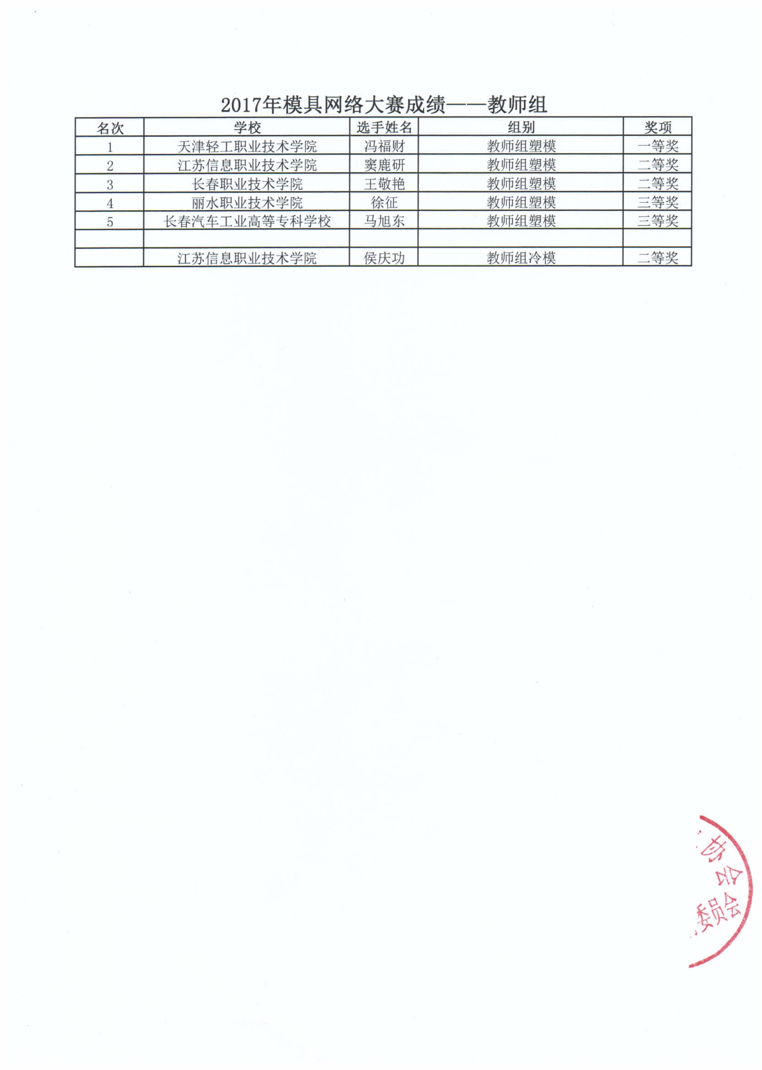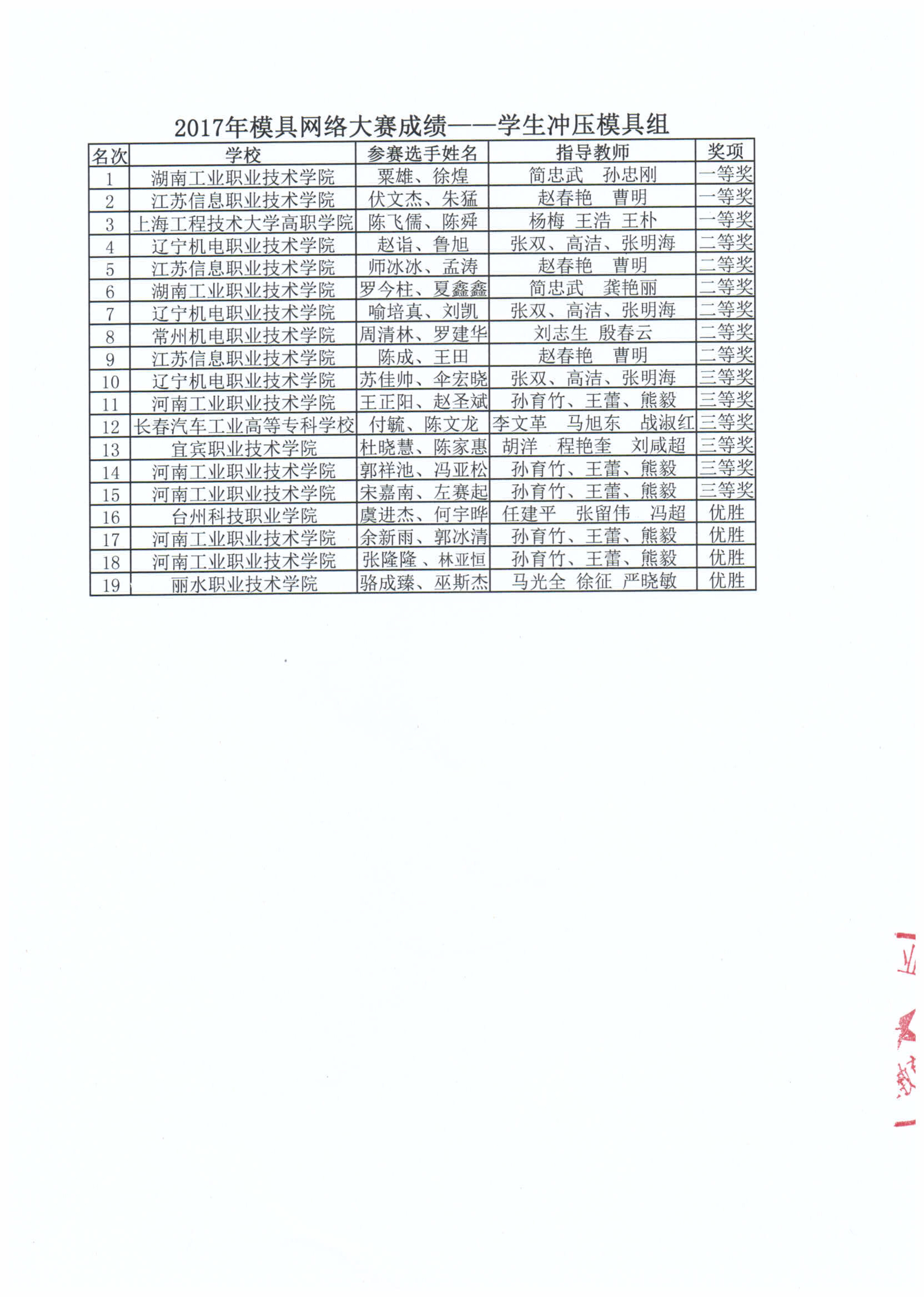 2017年模具網(wǎng)絡(luò)大賽成績