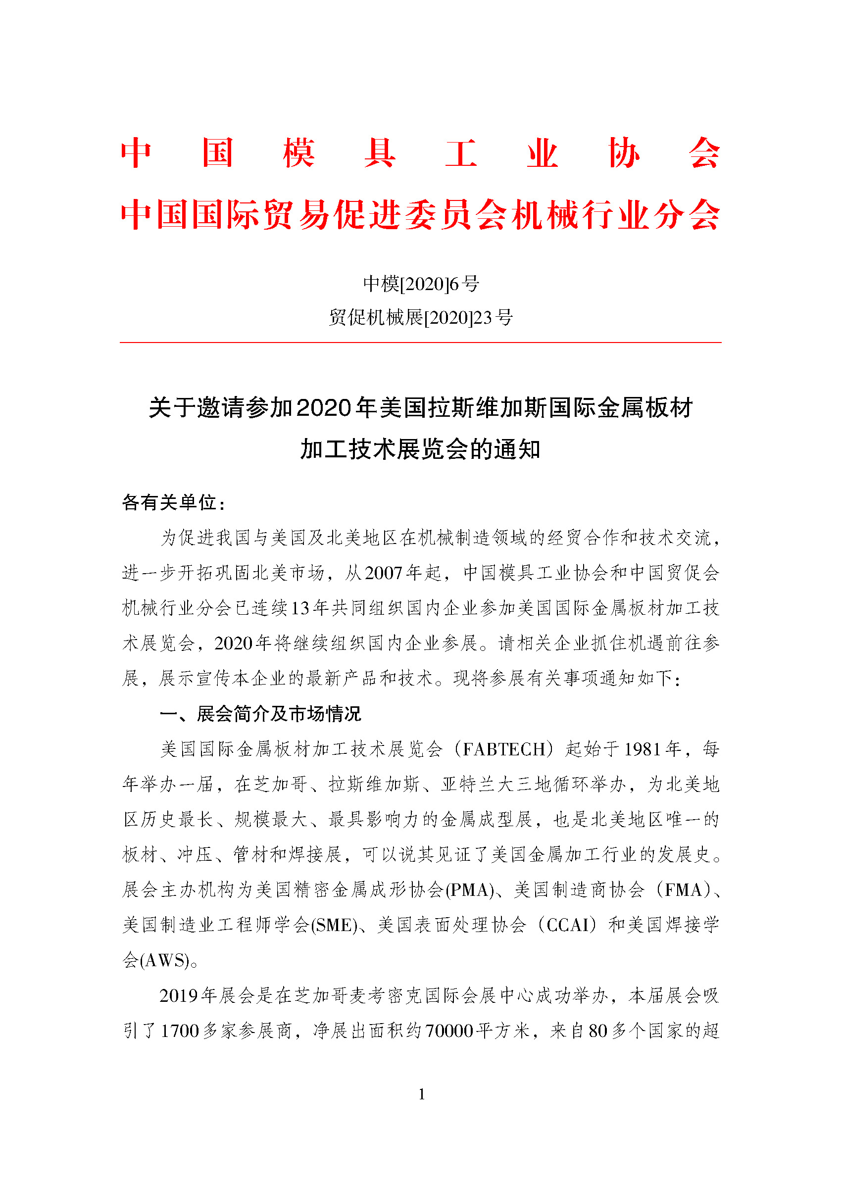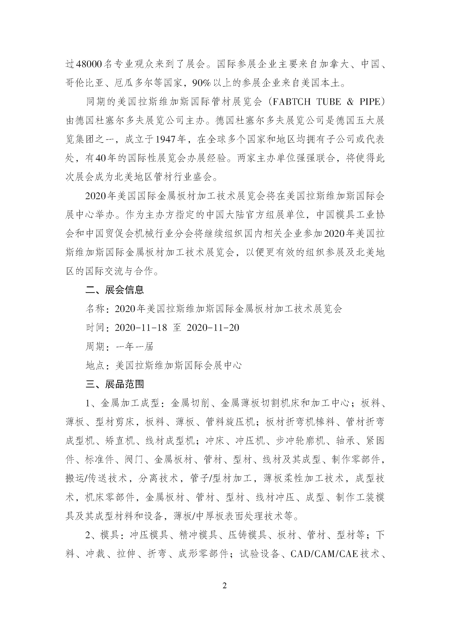 關于邀請參加2020年美國拉斯維加斯國際金屬板材加工技術展覽會的通知