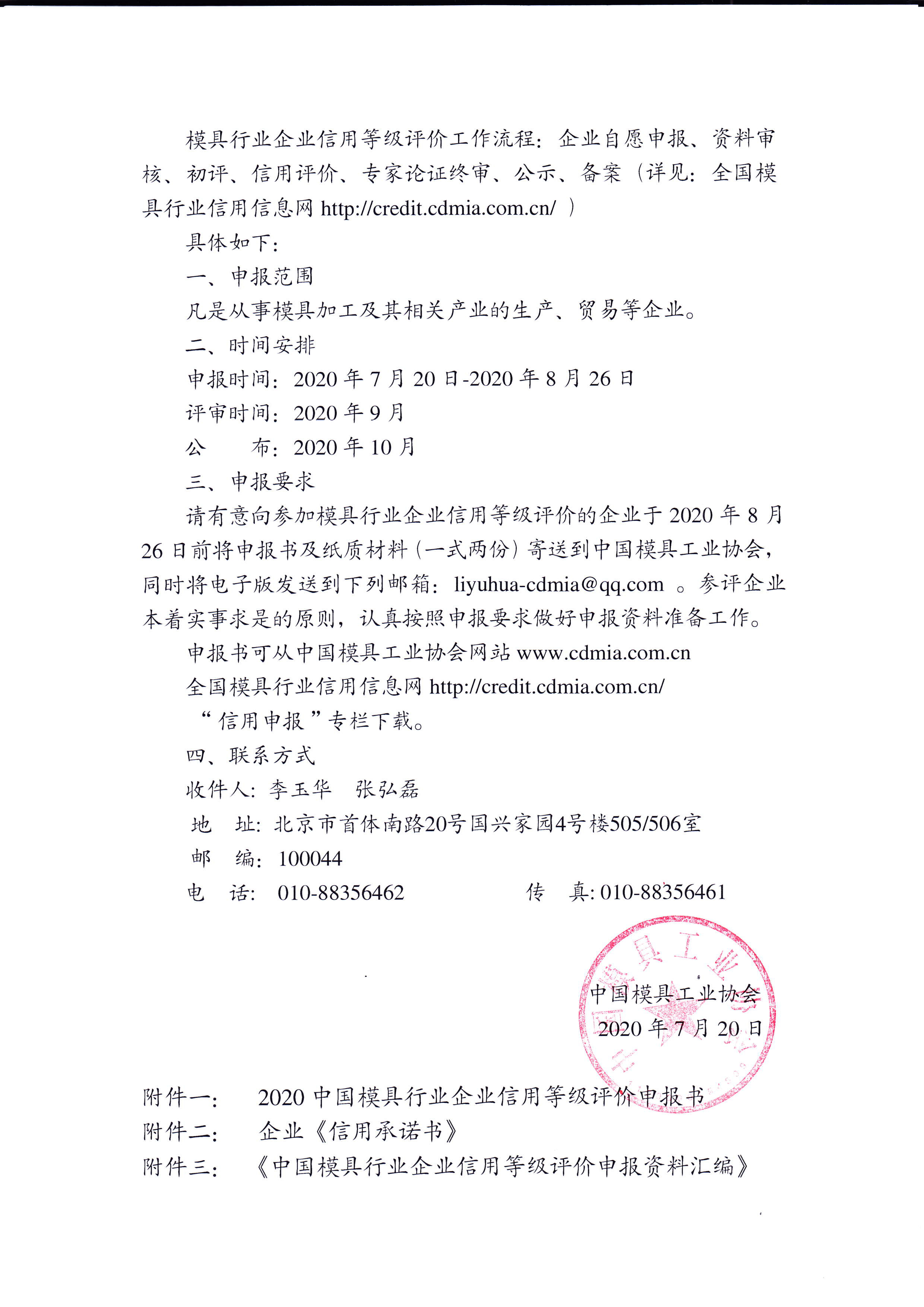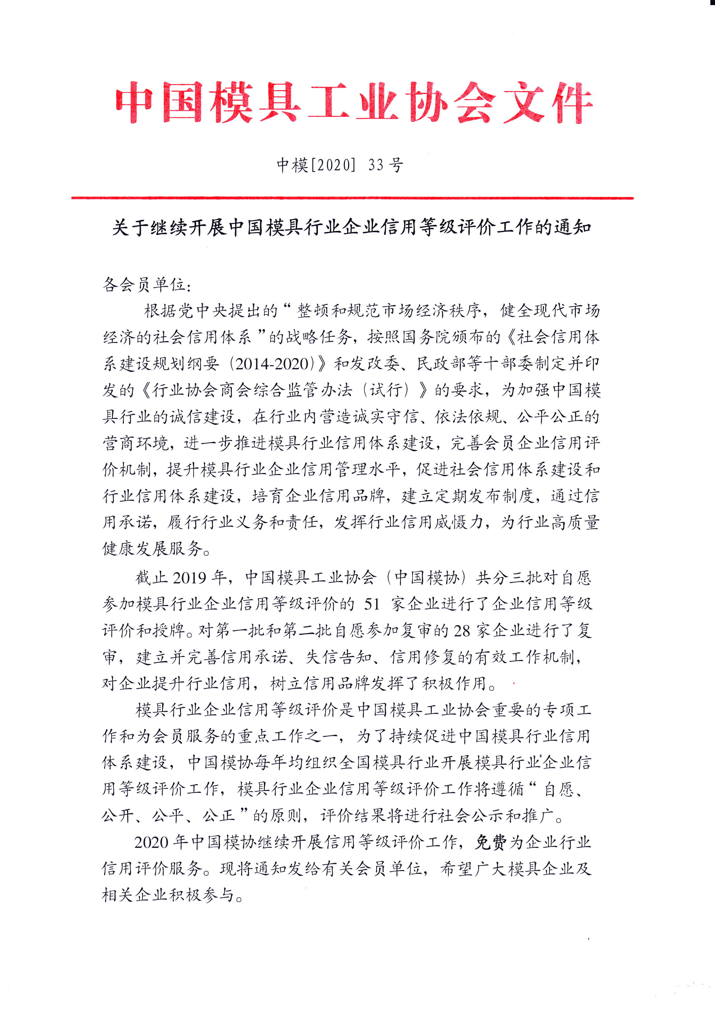關于繼續開展中國模具行業企業信用等級評價工作的通知
