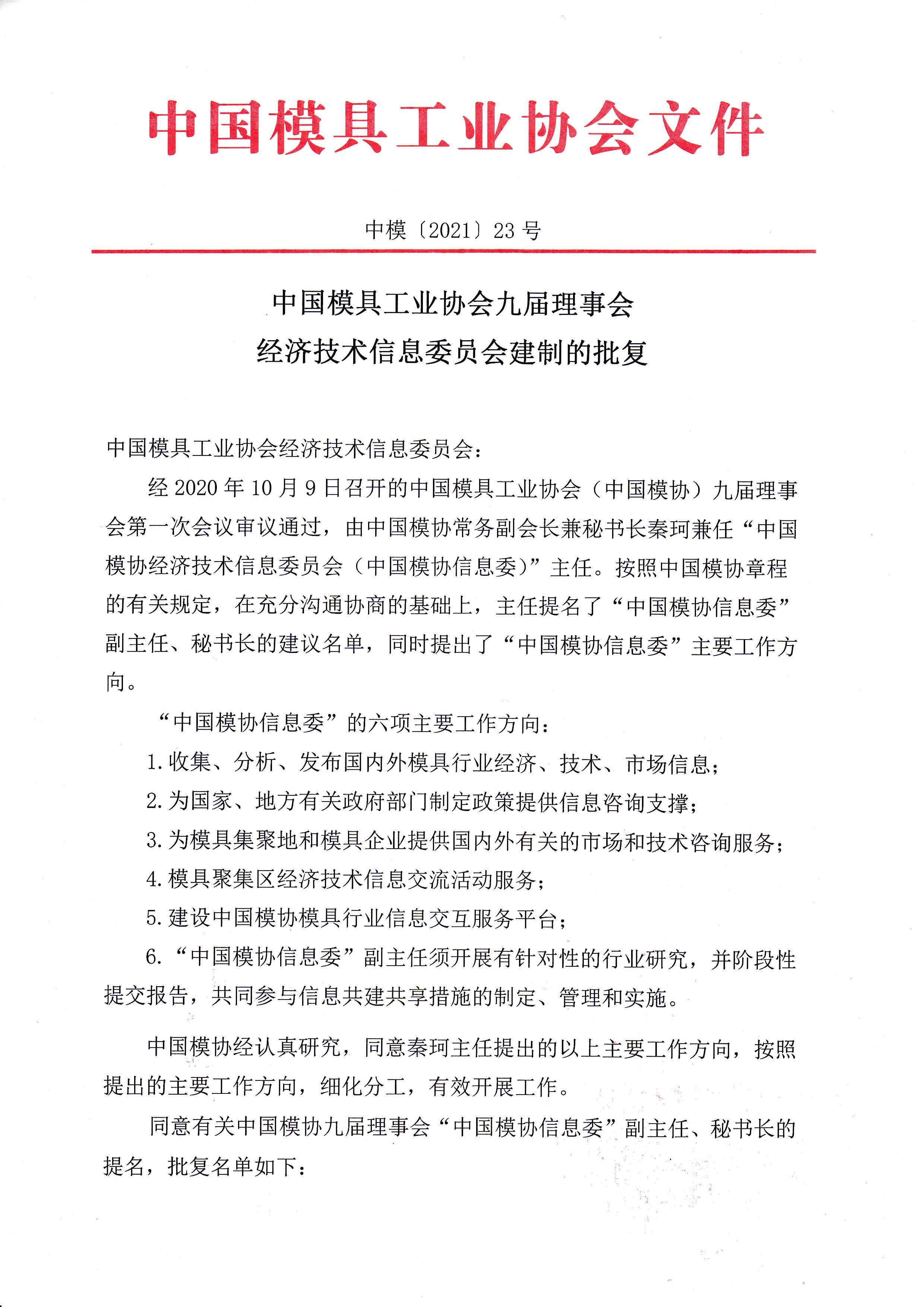 第九屆理事會經濟技術信息委員會建制的批復
