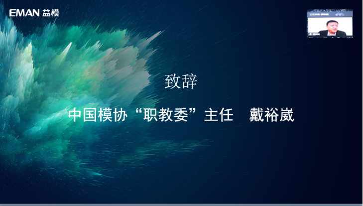 中國模具工業協會數字信息化委員會主任\武漢益模科技股份有限公司董事長易平先生致辭。易董事長代表武漢益模科技股份有限公司全體員工對各位領導老師同學的參加表示誠摯的歡迎。然后對益模公司做了簡單的介紹,多年來益模一直秉承理論與實踐相結合的理念,將15年在企業技術制造應用中的沉淀融入到職業教育領域,與國內多個一流職業院校合作,打造一系列智能制造實訓室,憑借申報的拉延模具數字化設計項目,成功入選第4批1+X證書的試點。積極進行教學模式探索,建立適應新形勢下的職業崗位標準,為院校教學課程設置及崗位職業能力培養提供有效依據,從而實現產教深度融合。
