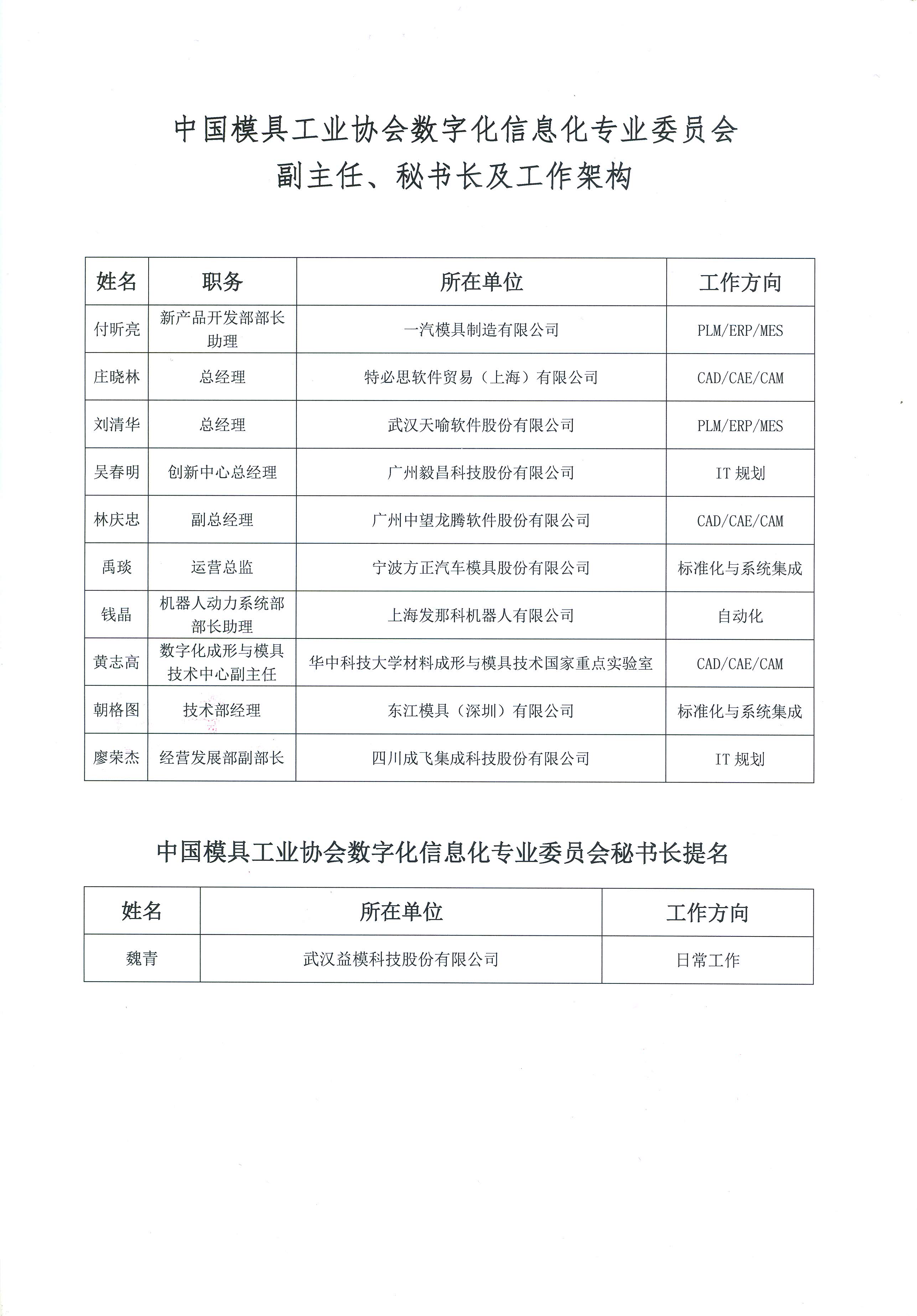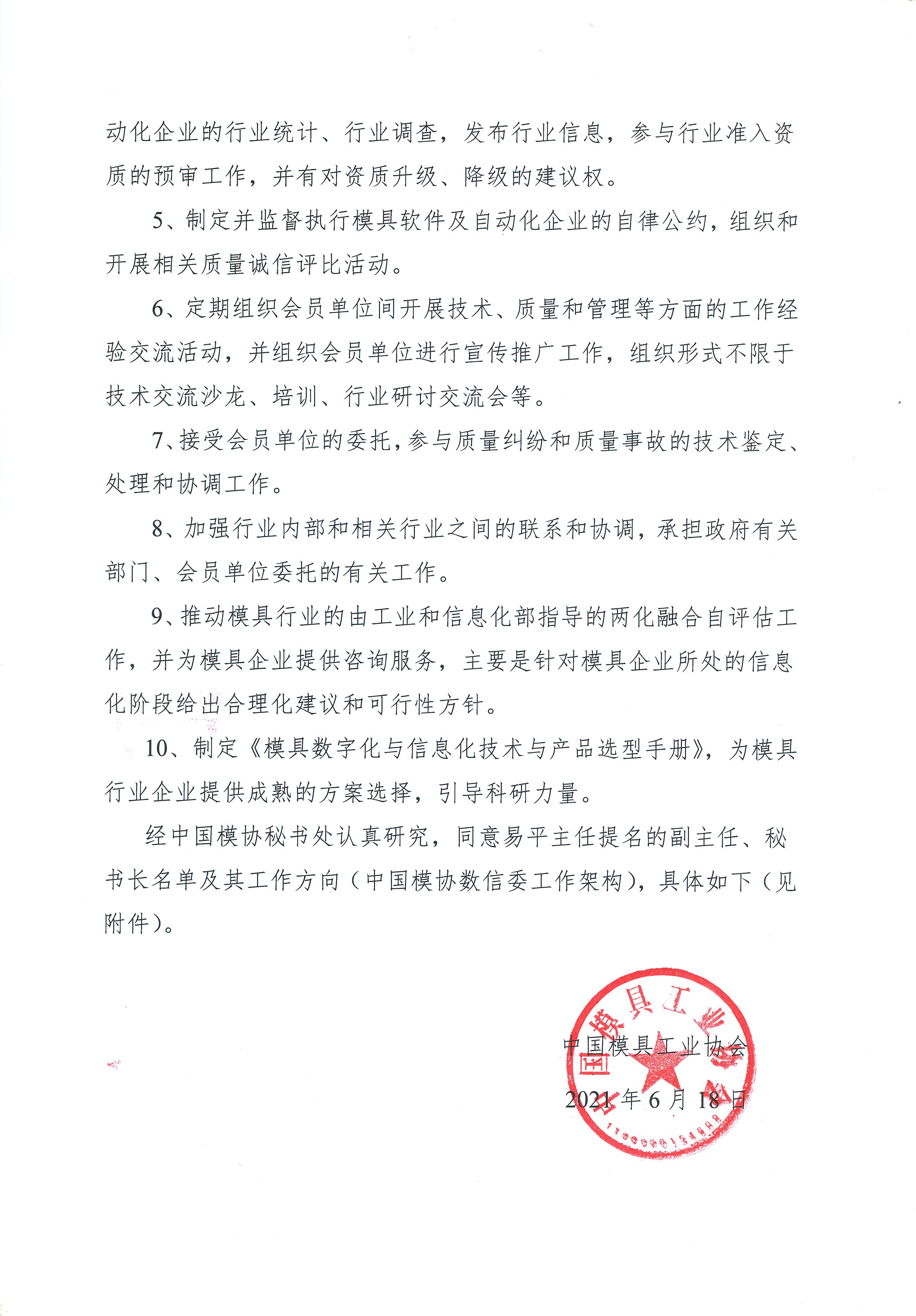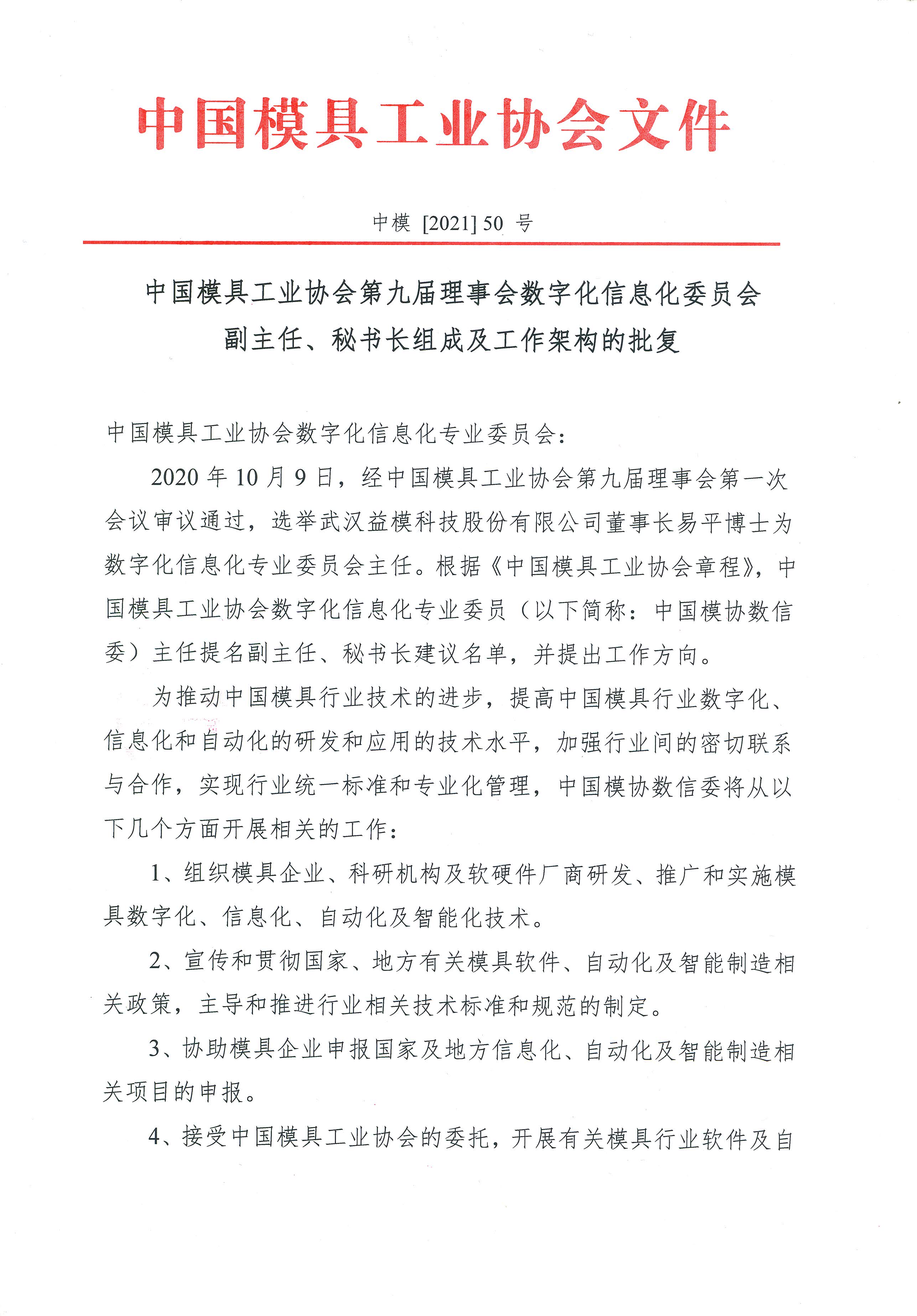 中國模協第九屆理事會數字化信息化委員會副主任、秘書長組成及工作架構的批復