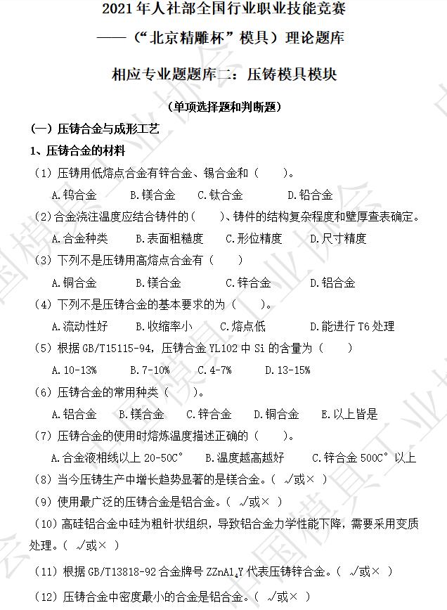 ——(“北京精雕杯”模具)理論題庫
