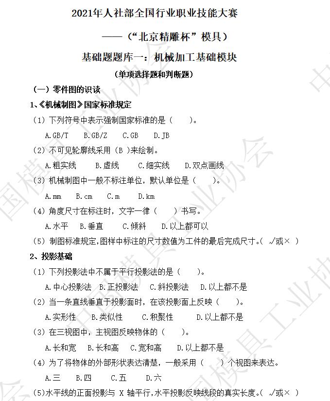 基礎題題庫:機械加工基礎模塊、專用夾具模塊