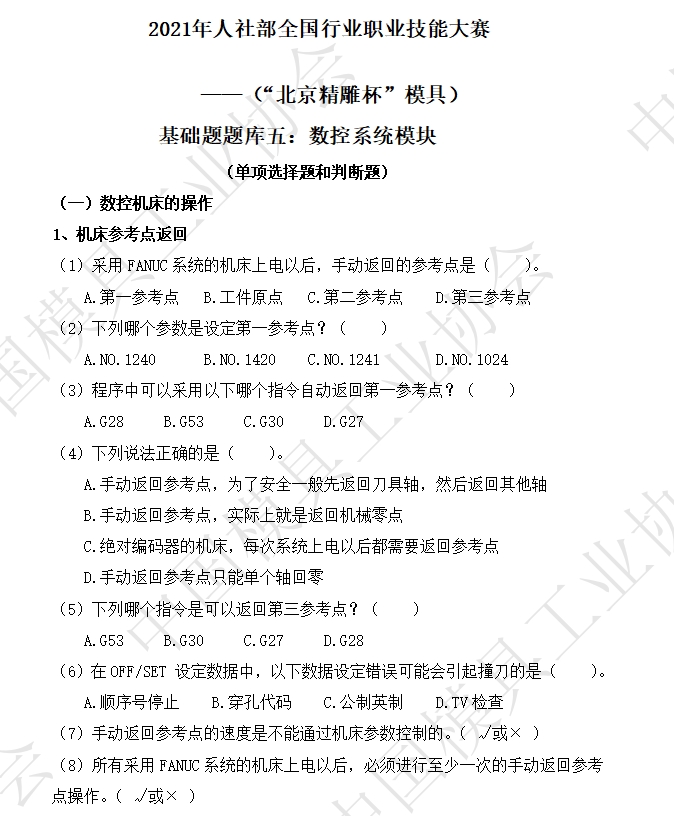基礎(chǔ)題題庫:數(shù)控加工模塊、數(shù)控系統(tǒng)模塊