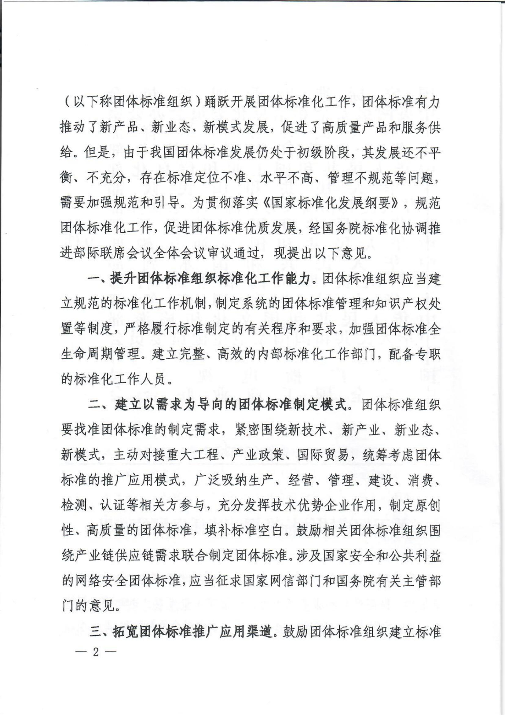 關于促進團體標準規范化優質發展的意見