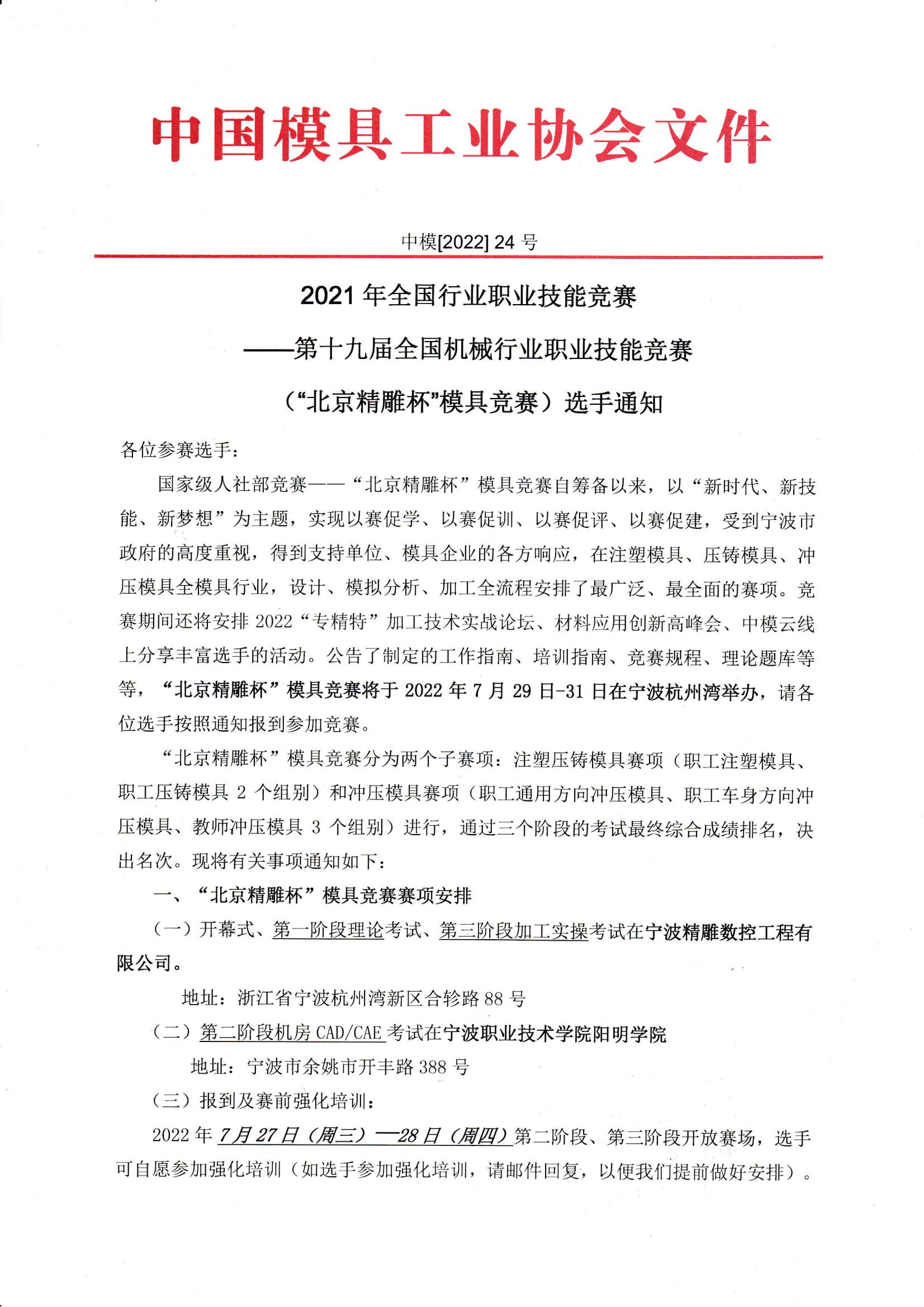 北京精雕杯模具競賽選手通知