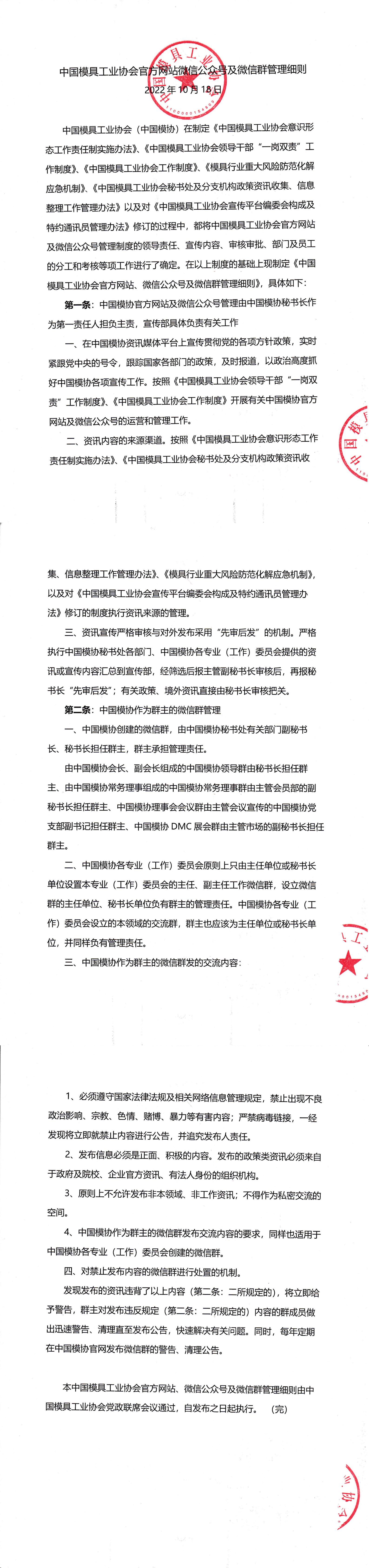 中國模具工業協會官方網站微信公眾號及微信群管理細則