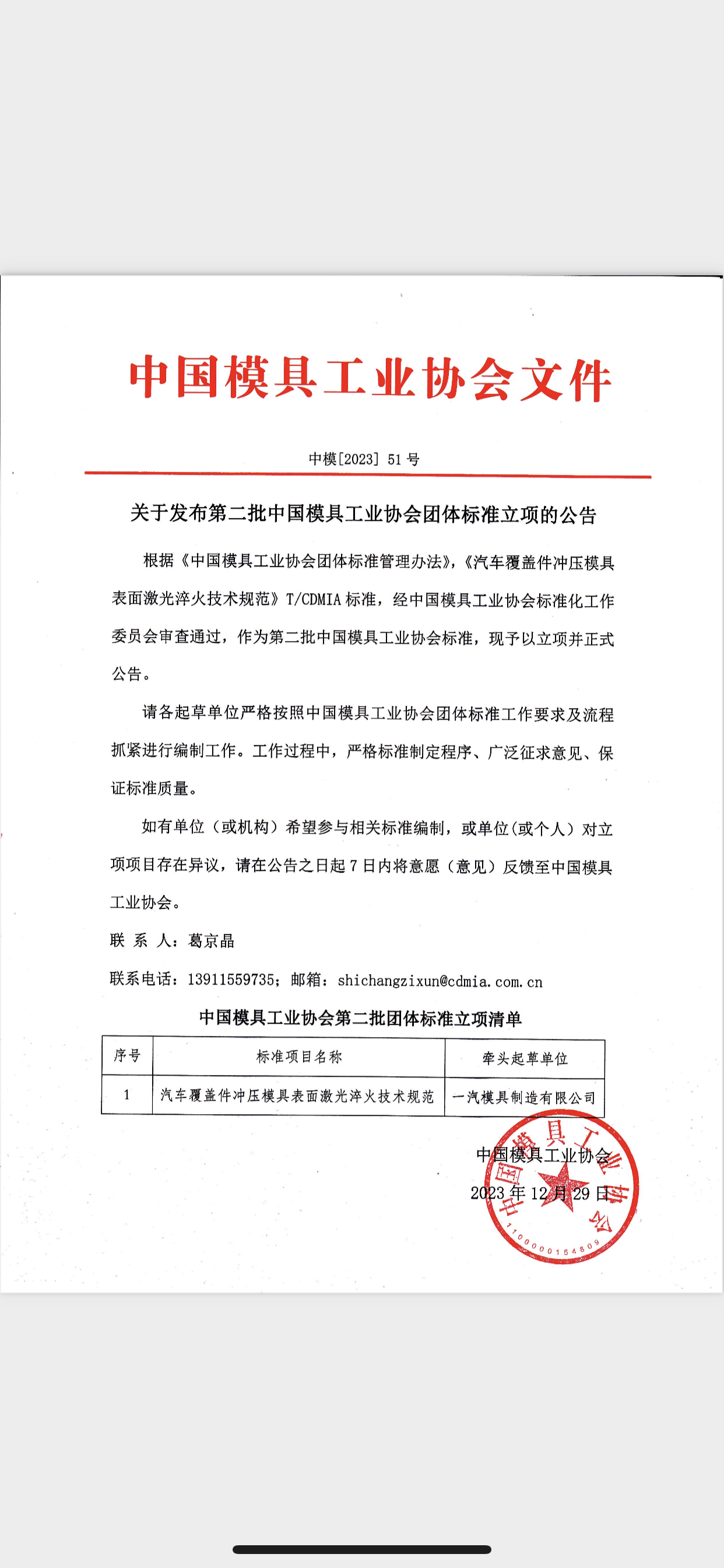 第二批中國(guó)模具工業(yè)協(xié)會(huì)團(tuán)體標(biāo)準(zhǔn)立項(xiàng)公告