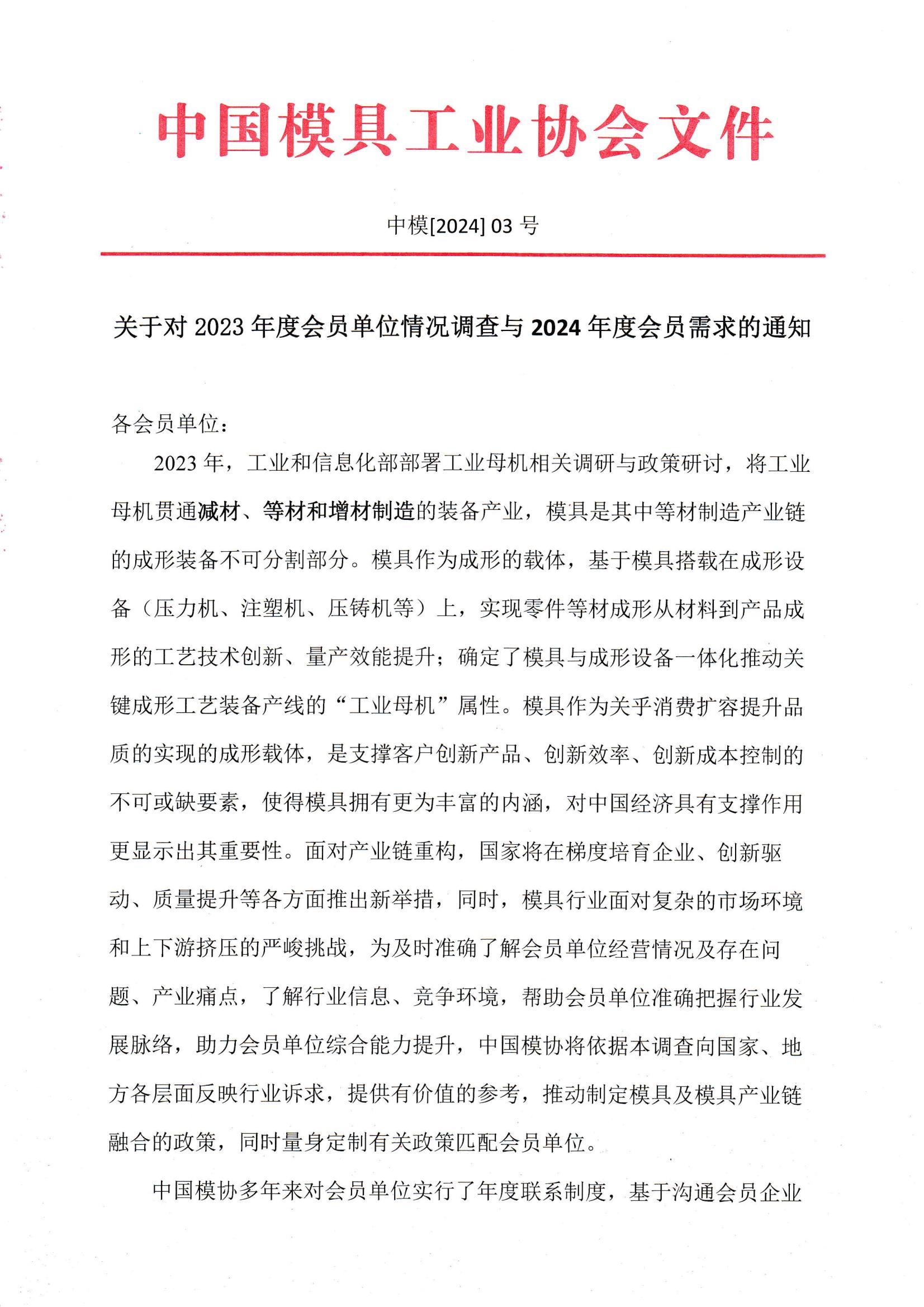 關于對2023年度會員單位情況調(diào)查與2024年度會員需求的通知