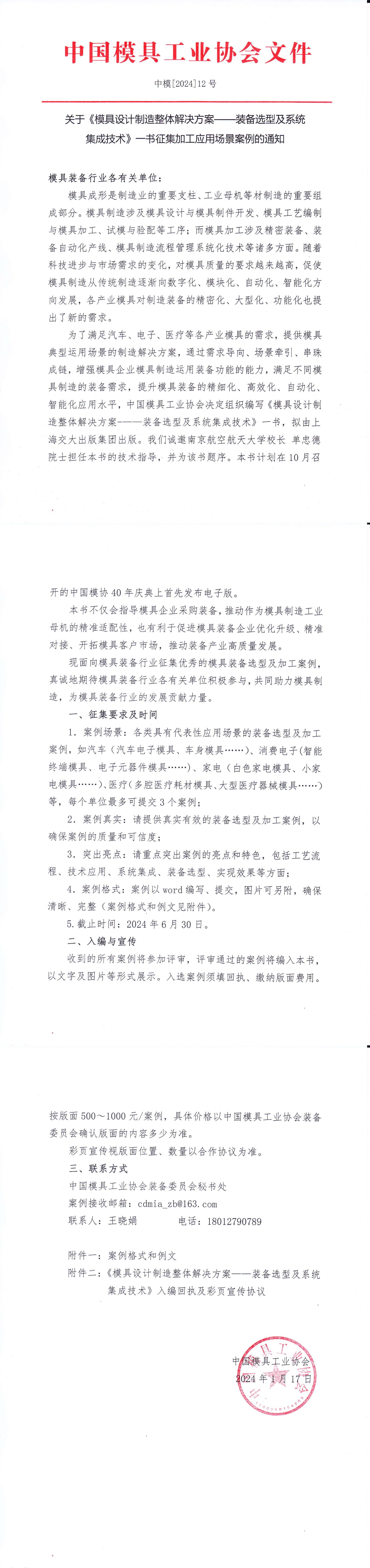 關于《模具設計制造整體解決方案——裝備選型及系統集成技術》一書征集加工應用場景案例的通知